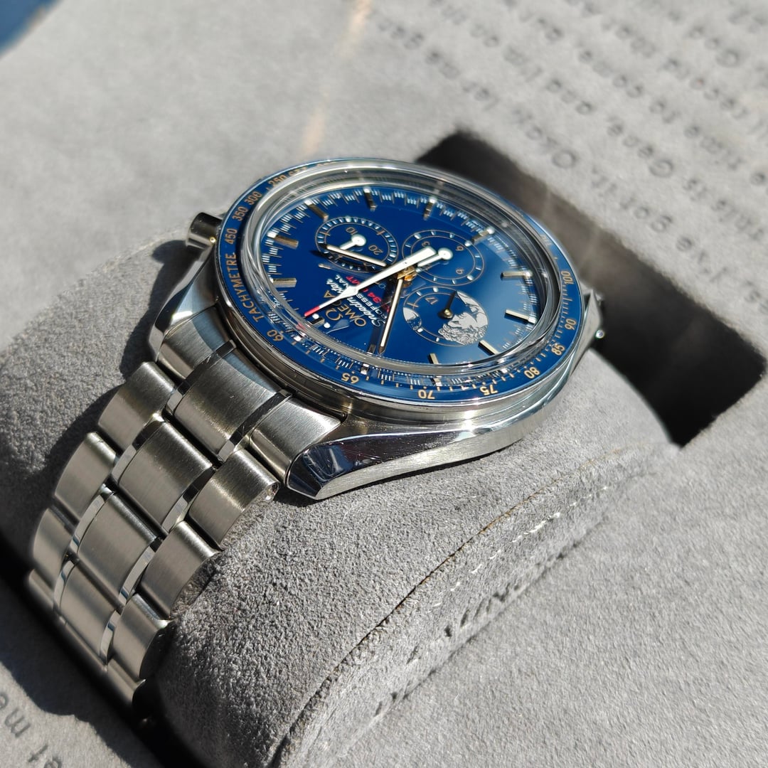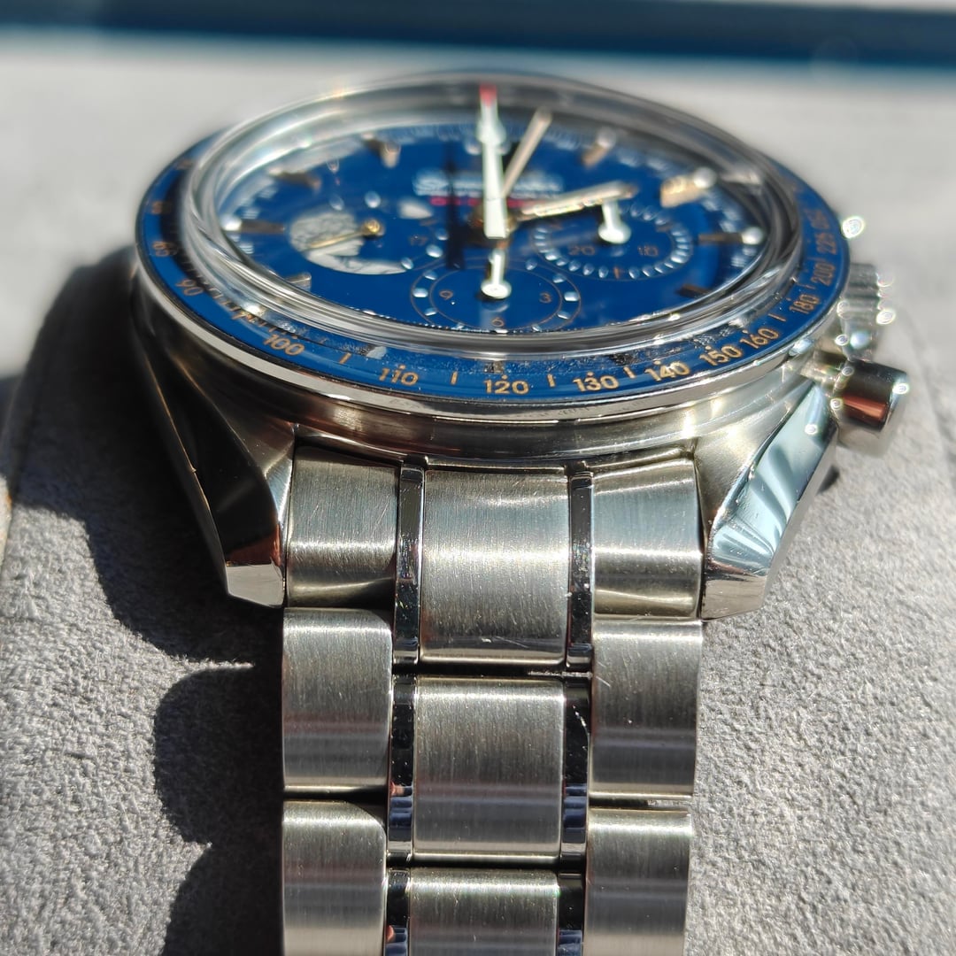 Up for sale is the rare and exquisite Omega Speedmaster Apollo XVII, a limited edition timepiece that commemorates the 45th anniversary of the final moon landing in 1972. This watch is a true collector's item, with only 1,972 pieces ever made. Details: * Model: 311.30.42.30.03.001 * Case: 42mm Stainless Steel * Bezel: Polished Blue Ceramic with Tachymeter Scale in OMEGA Ceragold * Dial: Polished Blue Ceramic with 18K Yellow Gold Indexes and Hour-Minute Hands coated in Super-LumiNova * Subdials: 18K Yellow Gold (Seconds) & Varnished Matt White Hands (Chrono minute & hour); Central Chronograph Hand is Varnished White with a Red Tip * Special Details: “05:34 GMT” printed in red, marking the time of the final step on the moon by Gene Cernan; 9 o’clock subdial features an etching of the God Apollo and the moon in PVD chrome color * Bracelet: Stainless Steel Bracelet * Movement: OMEGA Calibre 1861, Manual-Winding Chronograph Movement * Caseback: Engraved with “45th ANNIVERSARY”, “Limited Edition”, and the unique number (1756); Embossed with the Apollo XVII patch, “APOLLO XVII”, and “a tribute to Gene Cernan” * Water Resistance: 50 meters / 167 feet The watch was serviced in August 2024 by a highly reputed watchmaker in NYC and comes with a 2-year warranty. Additionally, it was also tested and serviced for water resistance by Omega in March 2025 and comes with a 2-year warranty. There are slight imperfections on the dial between 2 & 3 o'clock, that can barely be seen (see linked videos). Overall the watch is in very good condition and comes with the original box, Omega warranty card and all accompanying documentation, plus warranty documentaion from Grand Central Watch + Omega. Currently, the watch is on a Horus blue camo rubber strap, which will be included. The combination of its historical significance and luxurious design makes this Omega Speedmaster Moonwatch a must-have for any serious collector. Asking price: $7,600 shipped within CONUS or best reasonable offer. Also open to trades if they make sense; with the only caveat being, no tudors. Trades considered (open to others): - Omega Speedmaster Pro (white dial, sapphire sandwich) 310.30.42.50.04.001 - Omega Speedmaster Tokyo 2020 - (Rising Sun) 522.30.42.30.06.001 - Omega Speedmaster Tokyo 2020 - (Panda) 522.30.42.30.04.001 - Omega Speedmaster Pro Moonphase (white dial) 3575.20 - Omega Speedmaster Broad Arrow (white dial) - 3551.20 - Jaeger LeCoultre Master Ultra Thin Perpetual Calendar Q130842J, Q114842J - Vacheron Constantin Fifty Six Complete Calendar 4000E-000A-B439/4000E-000A-B548 Pictures: https://imgur.com/a/9kkbsFF Videos: https://imgur.com/a/00R2JVp Timestamp: https://imgur.com/a/YUzHD9w Located in Jersey City, open to a FaceTime/video call if needed. If you're interested or have any questions, please don't hesitate to contact me. As always, an upvote is greatly appreciated. Thank you for looking