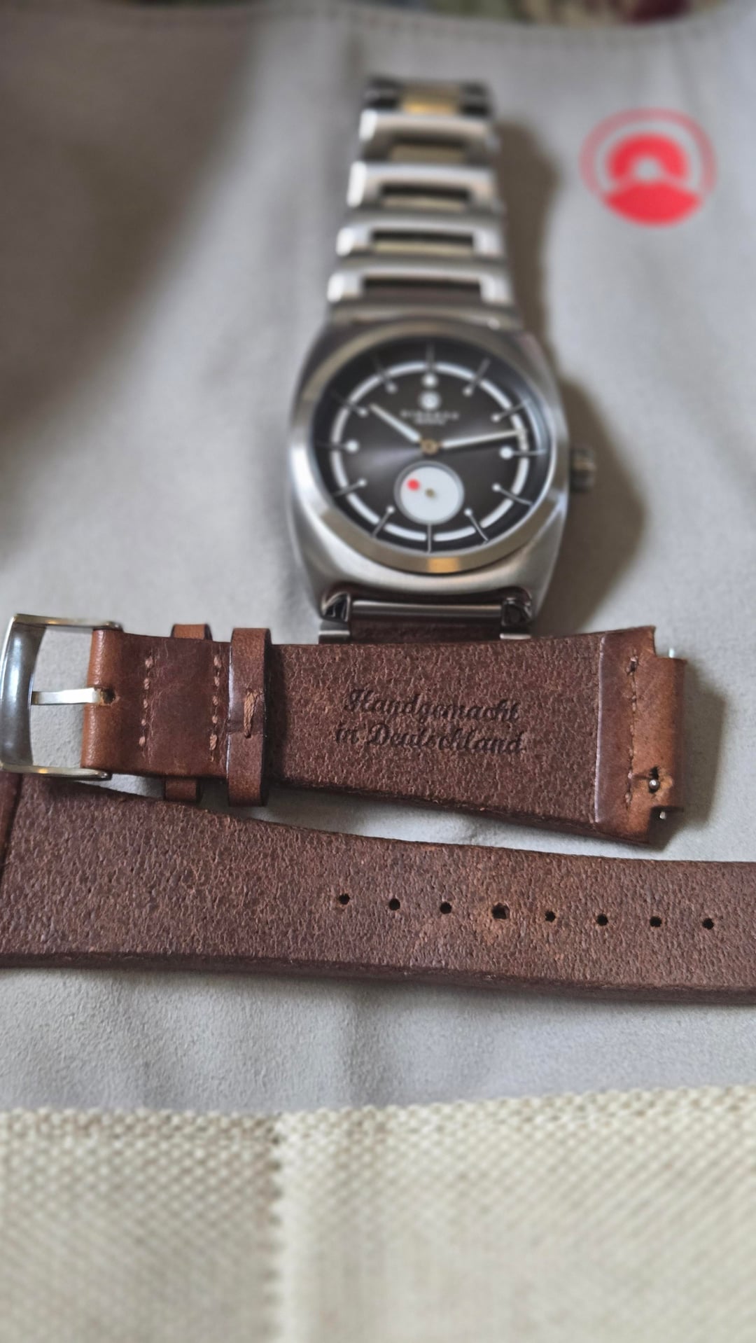 Greetings WatchExchangers: I am letting go of my Direnzo DRZ 06 Wandering Star. It's a special watch but I need to make room for a new Direnzo. If you know Direnzo, then you know this watch. It's a manual wind and the red dot in the center acts as the second hand, moving around the silver center dot to mark minutes. Hence the "Wandering Star" name. Great condition. Rarely worn (sadly). Under warranty until June 2026. Sized to my 7" wrist, plus 5 extra links. Includes a never-worn, lush brown German-produced leather strap made especially for Direnzo and this watch. Asking $845 shipped CONUS. International buyers pay shipping. Local San Francisco Bay Area pickup is ok. PayPal F&F. Add 4% for G&S. Thanks! Here are the key specs: |**Case**|316L Steel with scratch resistance coating (HV 800)| |:-|:-| |**Crystal**|Flat sapphire with anti-reflective coating| |**Bracelet**|Leather or Metal Bracelet| |**Diameter without crown**|38mm| |**Lug to Lug**|46mm| |**Height**|10.8mm| |**Water resistance**|10 atm| |**Movement**|Sellita SW-216-1 Elaborated + Incabloc| |**Caseback**|Screw down with sapphire crystal| |**Weight**|150gr. with bracelet (all links)| |**Warranty**|24 months|