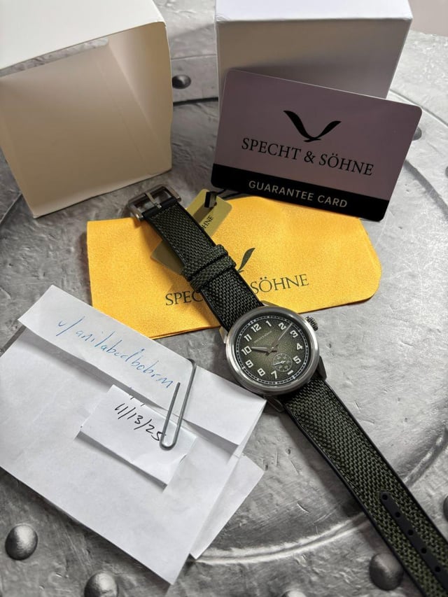 Up for sale is my Specht & Sohne "Terra" Dirty Dozen watch. 38mm case x 10mm thin x 44mm lug to lug. It is in like new condition and keeping great time (see timegrapher image). Time Stamp: [https://i.imgur.com/J13baH9.jpeg](https://i.imgur.com/J13baH9.jpeg) Album: [https://imgur.com/a/1KeTMIS](https://imgur.com/a/1KeTMIS) Price: $89 (Zelle, Wire, BTC, F2F) or $99 PP G&S. Price includes standard shipping to CONUS address (signature required). Payment via Zelle, Wire, Crypto (BTC), Cash (face to face) or PayPal Goods & Services. Includes: Watch, Box & Papers Location: Orange County, California Shipping: USPS Ground Advantage, FEDEX or UPS w/ Signature Required. I will only ship to CONUS. Buy with confidence. I have good reviews here on Reddit as well as a bunch of older sales references on WUS. I am a business owner (not watch related) with over 4000+ feedback on eBay. I am comfortable doing a video chat to show the watch if needed. Please PM me for any questions that you may have. Thanks for looking.