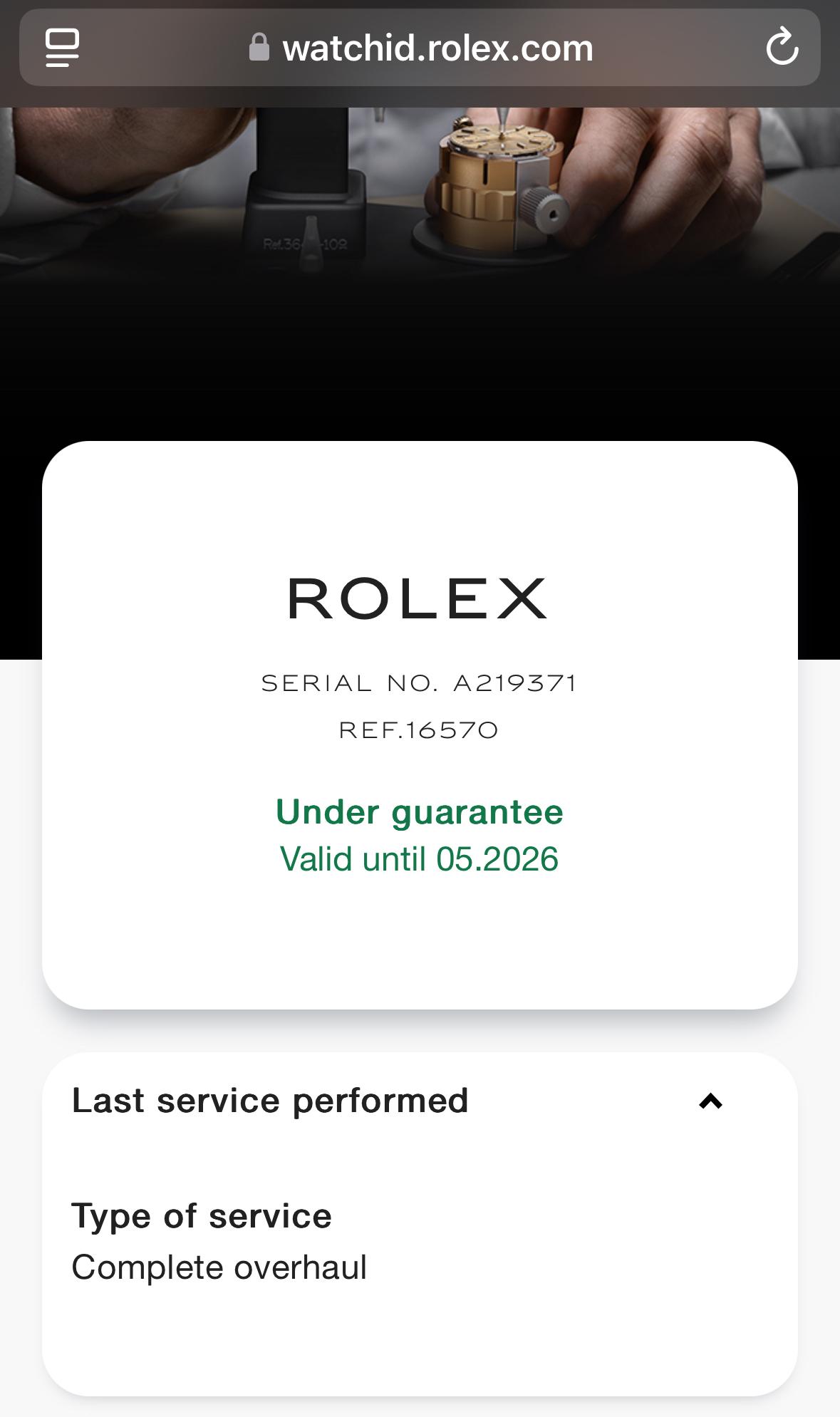 This Explorer II ref. 16570 has an A serial number, which dates it to either 1998 or 1999. The watch was serviced by Rolex in 2024 and remains under warranty until May 2026. I purchased the watch through eBay, so it was authenticated after I purchased it. It will come with the newer style Rolex service pouch, Rolex serivce card, and eBay authentication card.