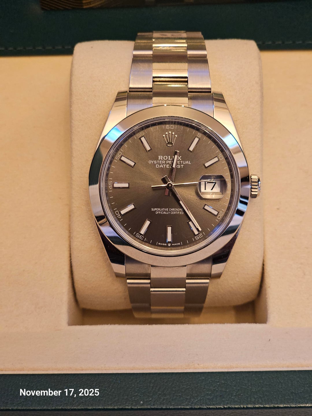 ![Thumbnail [WTS] Rolex Datejust 41 (Reference 126300) – 2025, Slate Dial, Oystersteel, Oyster Bracelet, Smooth Bezel (Brand New) $10,000 + shipping 4](https://cdn-cf.watchpatrol.net/120x120/img/full/24cb082ce4a67bd96cdaf61311e4e4ffc87e79b0.jpg)