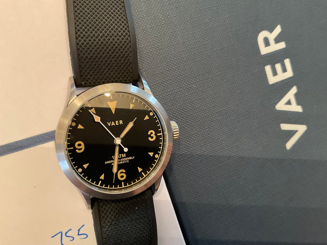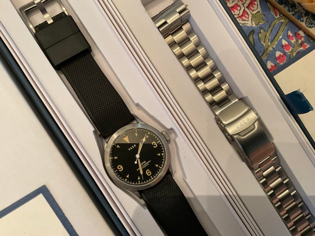 Vaer A3 Tradition automatic. Great watch and fun 36mm size, but I never wear it. Comes with metal bracelet and rubber bracelet in black. $300 plus shipping to CONUS. Please comment here first. I will ignore otherwise.