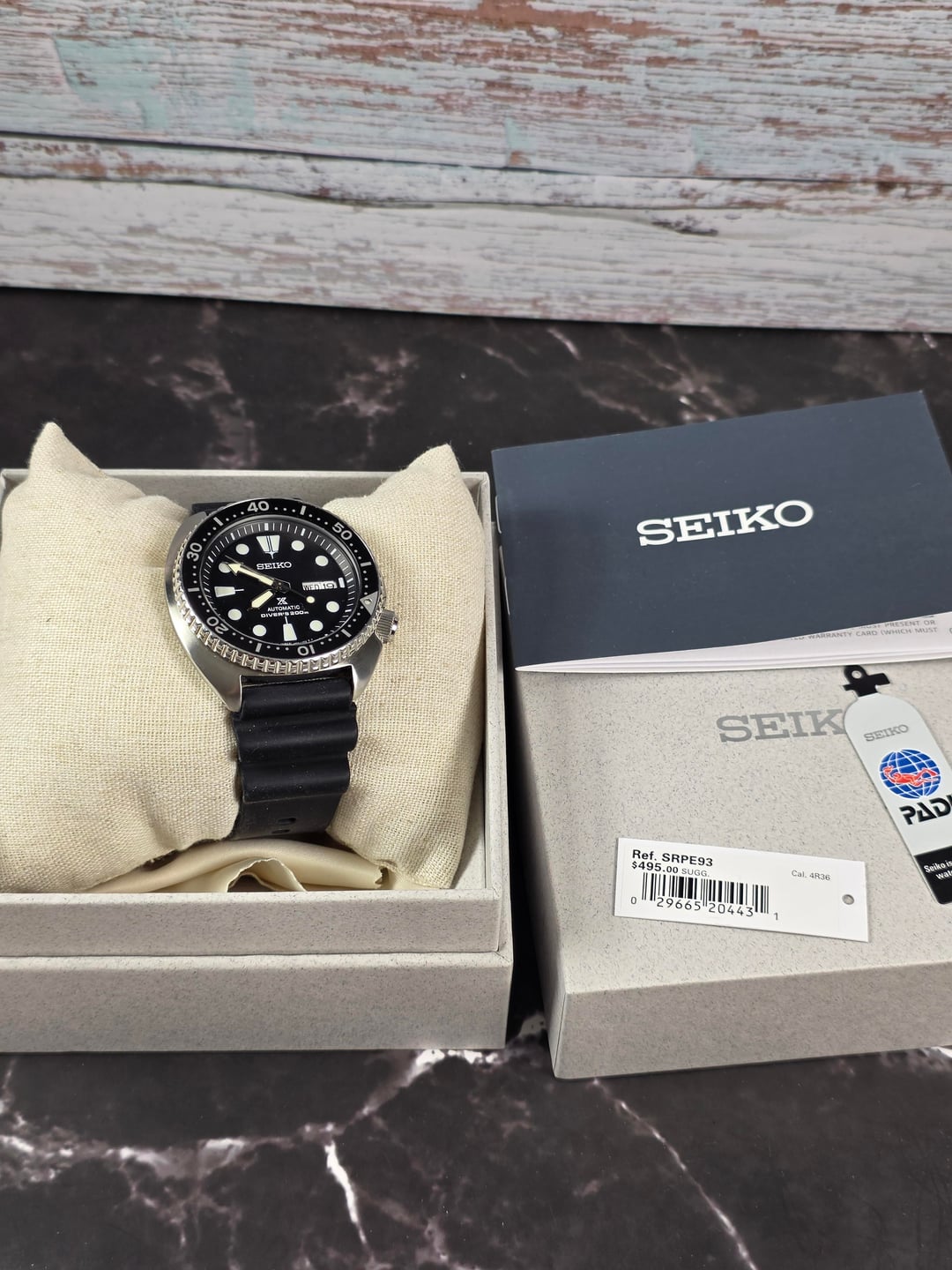 Available for sale! Seiko SRPE93 Turtle 44mm Good Pre-Owned Condition • Crystal is clean • Bezel is clean • Case shows wear on the polished sides • Rubber strap in good shape • Minor wear on keeper and buckle Comes with box, hangtag, and blank warranty card. Asking: $299 + label Ships from NJ (CONUS only) Zelle preferred, PayPal & Venmo FF accepted Additional pictures and references available upon request.
