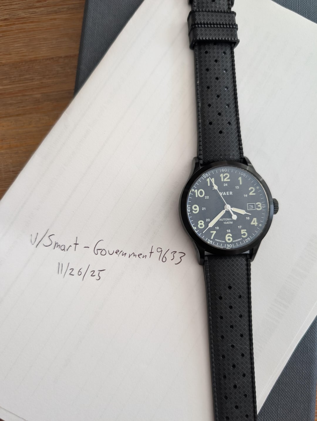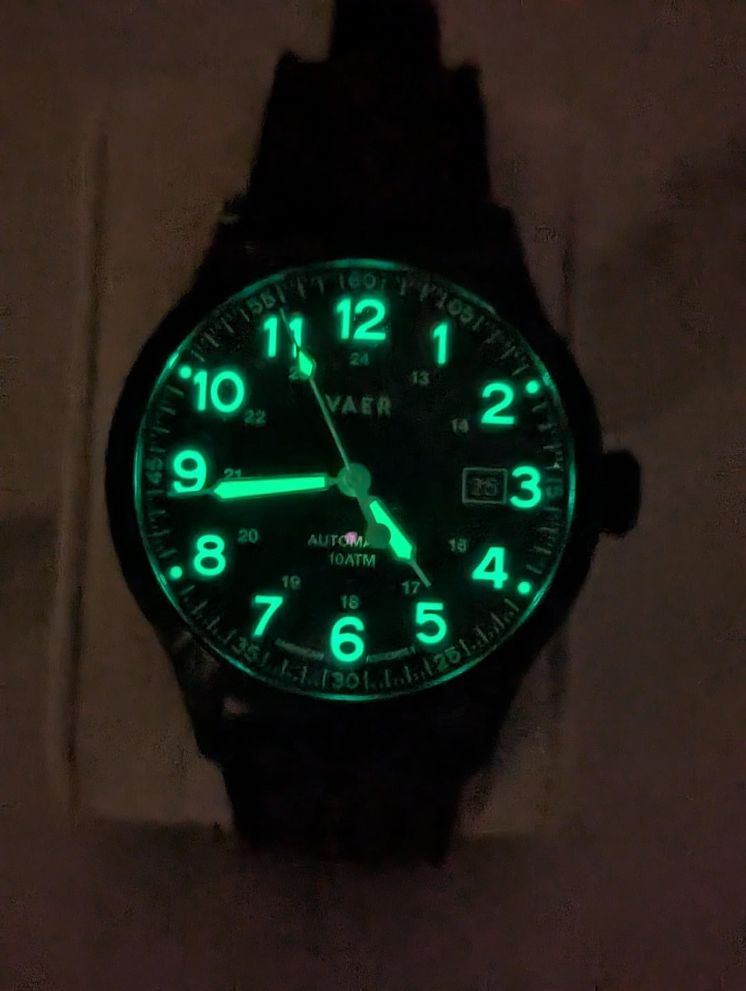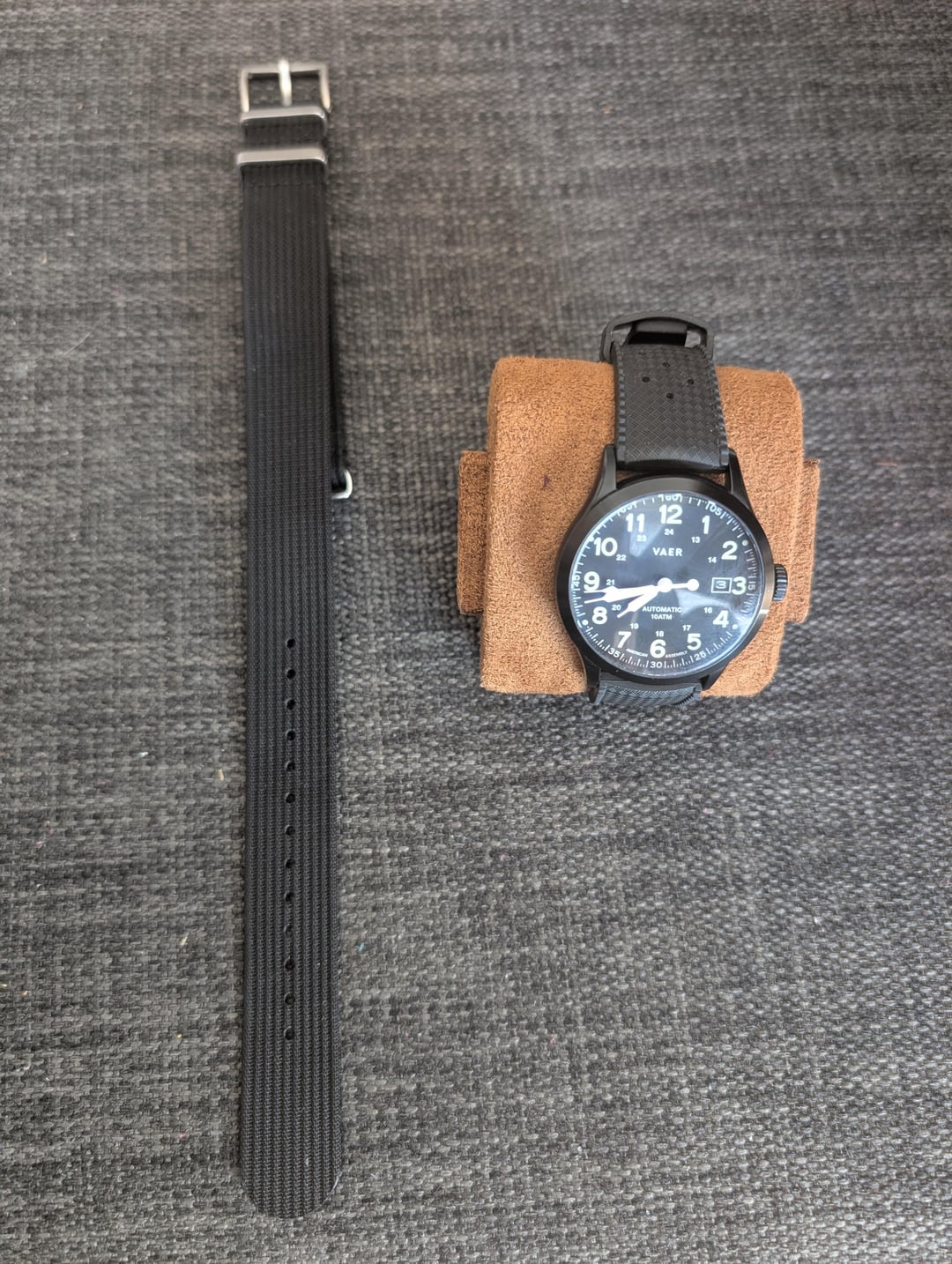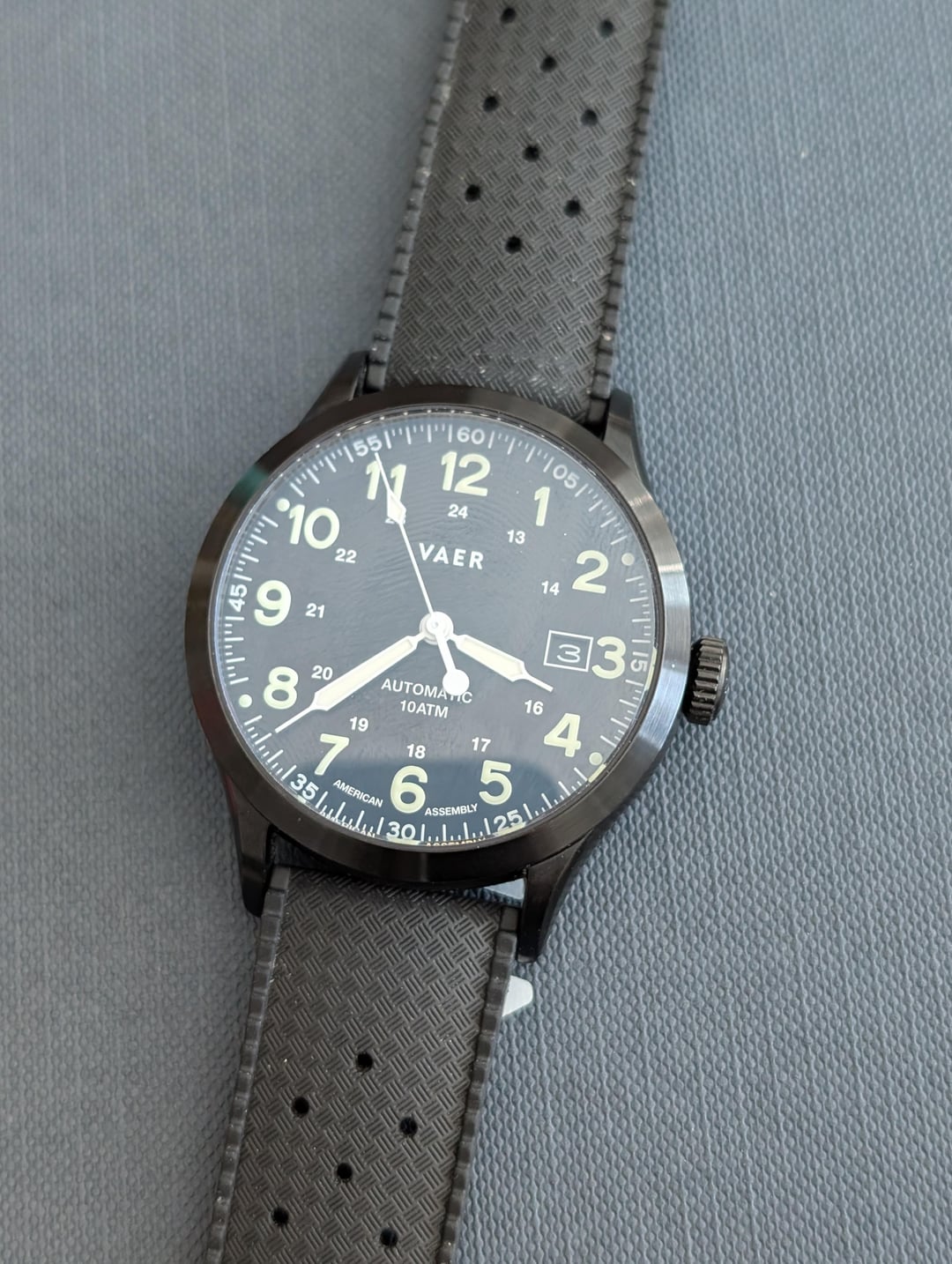Hi everyone, I'm putting up my Vaer A5 Tactical Field 40mm Auto for sale. This was one of my first pieces I bought and it was my daily for about six months before I caught the fever and started going down the rabbit hole of watch collecting. Awesome lume, and honestly a little tough to let this one go as really enjoy it on the wrist but unfortunately I need to make some room in the box. This piece was purchased 1/2024 and comes with a two year warranty so it will be warrantied through 1/2026. Comes with two straps; a FKM tropic strap and a single pass strap. Ships with original box. Watch is in very good shape, with the only noticeable mark being a tiny spec on the right side near the crown. More pictures or video available upon request. Thank you for looking! [VAER | A5 Tactical Field: 10ATM, Sapphire Glass, USA Assembled](https://www.vaerwatches.com/products/a5-tactical-field-40mm-usa-auto) Movement: Miyota 9015 Case Dimensions: 40mm Asking: $330 shipped insured within the CONUS. MSRP of $659 Payment: Zelle or Paypal(4% if using G&S)