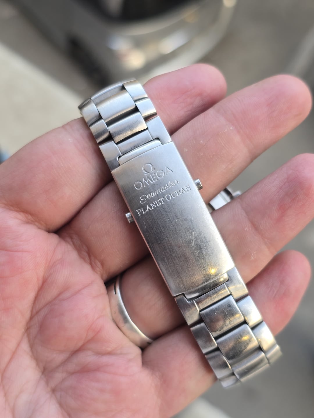 UP FOR SALE OMEGA SEAMASTER PLANET OCEAN CO-AXIAL 600M DIVER WATCH AUTOMATIC CAL. 2500 DIAL: NICE BLACK DIAL. OMEGA LOGO IS SLIGHTLY WATER DAMAGED. AS SHOWN IN PICTURES. HANDS: EXCELLENT. BACK CASE: EXCELLENT, GENUINE SIGNED SCREW DOWN CROWN, PERFECT. CHAIN FITS UPTO 7.5" BEZEL: IN EXCELLENT SHAPE, LIKE NEW, JUST A TINY MARK AT 9. 42MM WIDE WITH OUT CROWN. NO BOX AND NO PAPERS INCLUDED. SOLD AS IS. SERVICE HISTORY UNKNOWN. NICE WATCH TO ADD TO ANY COLLECTION NO BOX AND NO PAPERS. MY ASKIG IS 2499$ USD SHIPPED. PAYMENT ACCEPTED THROUGH WIRE, ZELLE AND PAYPAL F&F ONLY . PLEASE CONSIDER THESE PICTURES AS PART OF MY DISCRIPTION. FEEL FREE TO ASK ANY QUESTIONS......