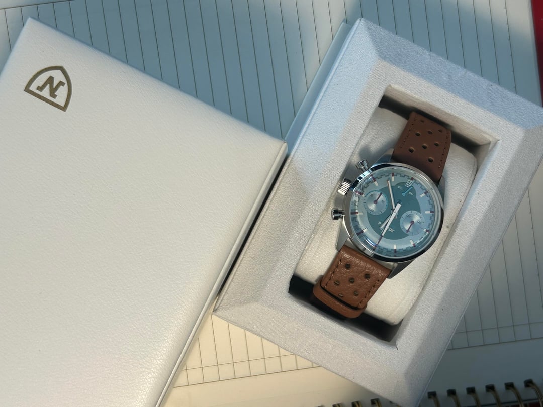 Nivada Grenchen x Worn & Wound Datomaster VK63 V3. Purchased at NYC Windup Watch Fair earlier this year and isn't getting enough wrist time so hoping to recoup some costs and have it go to someone that would appreciate it. Comes with extra maroon Windup watch shop leather strap (matches color on indices) Full kit purchased october 2025, comes with all boxes and papers. I have worn it 2 times to the office and back. pristine condition. great watch and awesome size. very unique dial color. Dimensions: W:36 L2L:43.5 H:12 LW: 20 (drilled) **Sell: 399$ shipped CONUS (paypal F&F)** **Trade: Interested in CW, Scurfa, Seiko, Longines, Nomos, Paulin, etc. Prefer 40mm and below, can trade up or down depending on piece. Send me your proposals!**