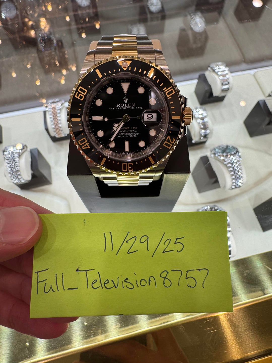 FOR SALE!!! Rolex Sea-Dweller 43 Two Tone 126603 Watch only, with 1 year in house warranty Specs: 43mm 18k Yellow Gold & Stainless Steel Yr. 2019-2024 Fits a 7.5 inch wrist at most No box no papers Condition: has some scratches on case back and nick near helium escape. Includes 1 year in house warranty Price: 1️⃣4️⃣,3️⃣9️⃣9️⃣ Shipped!!! (Bankwire only, WA state residents are subject to sales tax) IG: porcellojewelers Email: [email protected]