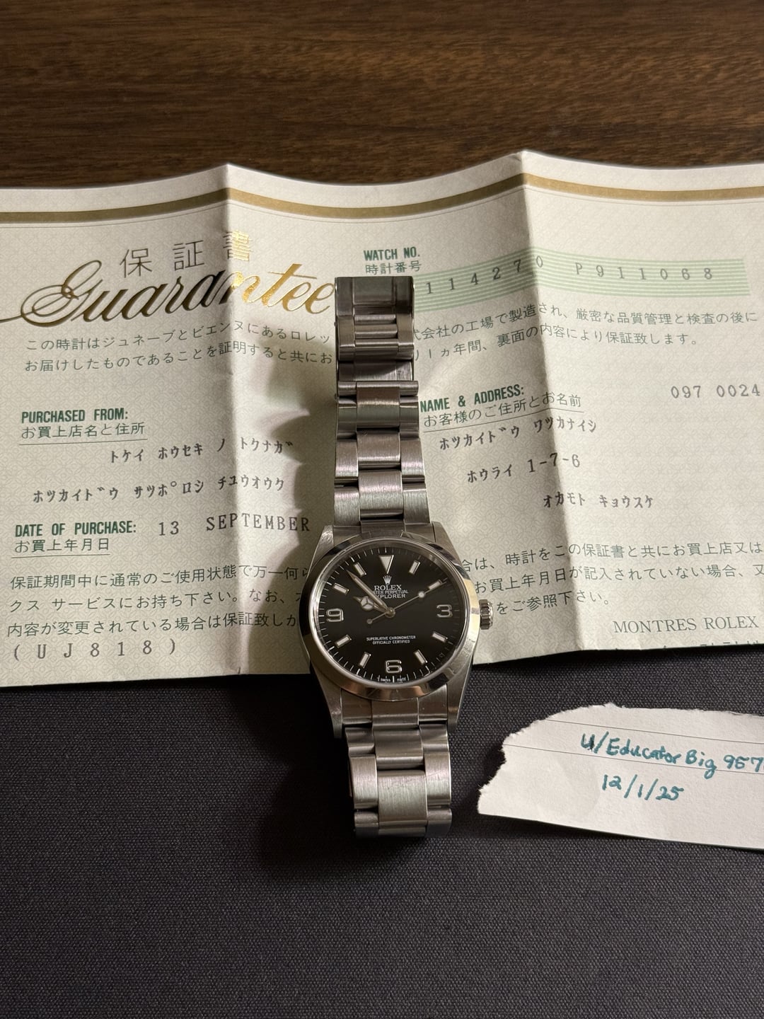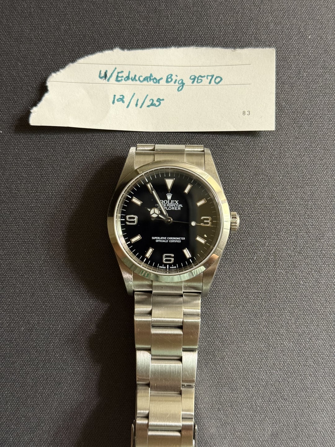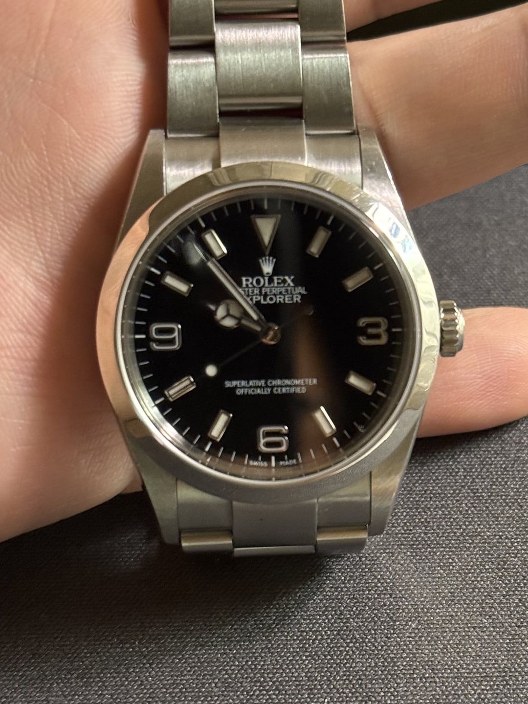Hi all, Selling a beautiful Rolex Explorer 1 from 2001 Comes with papers and can include box as well 12 links included Asking $5,399 net to me Happy to facetime or send additional pictures