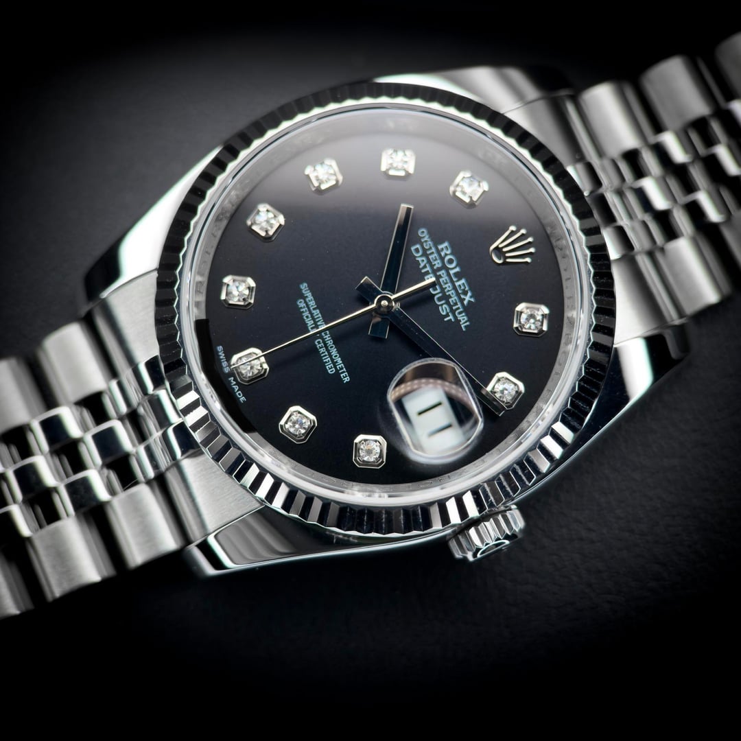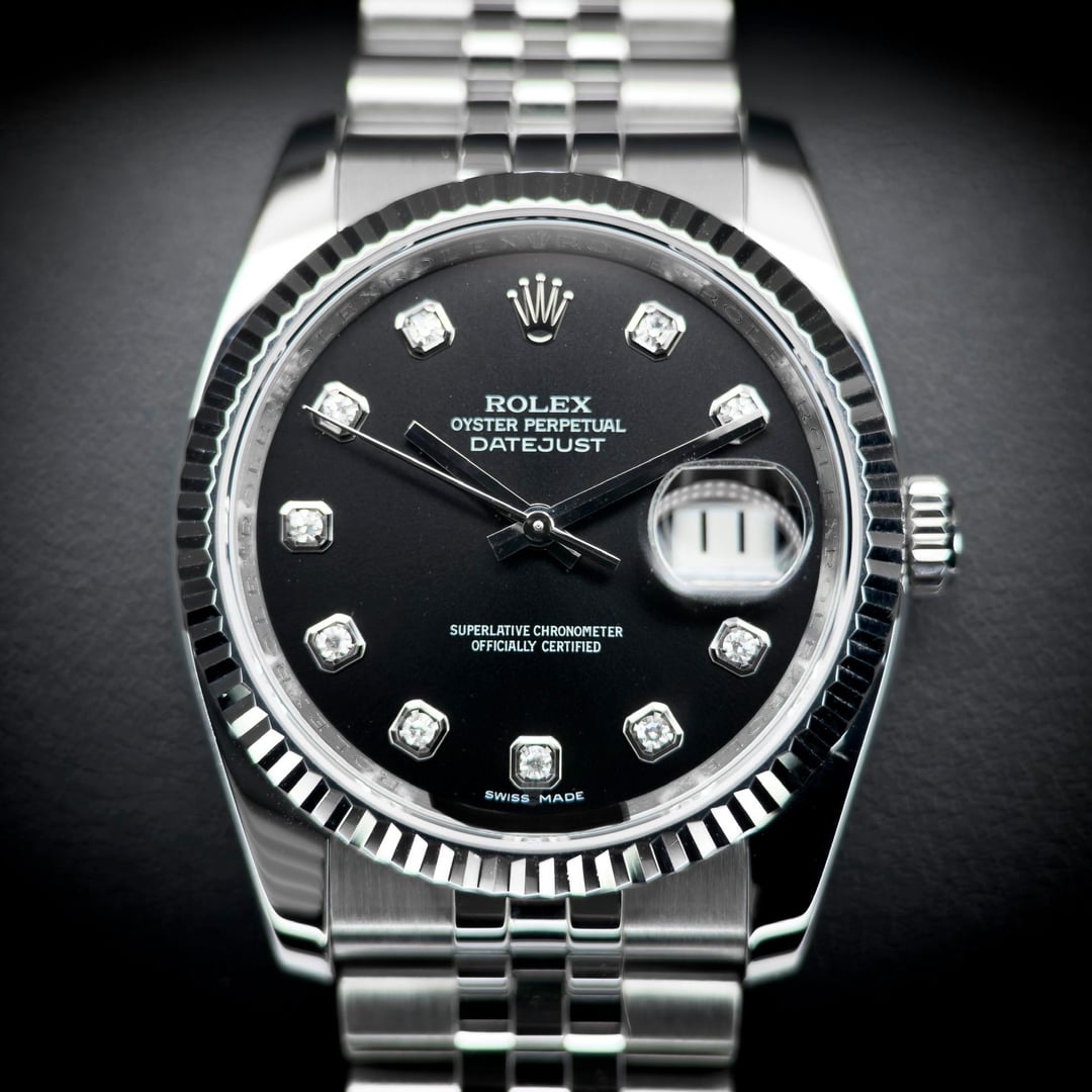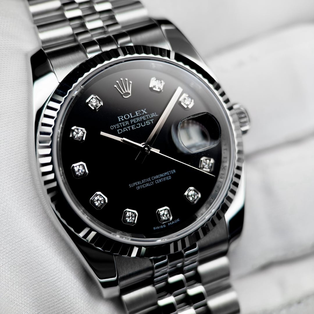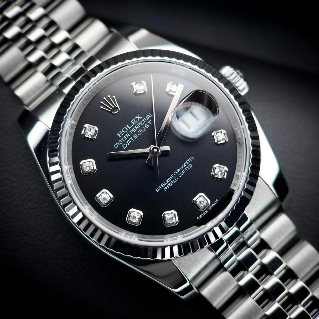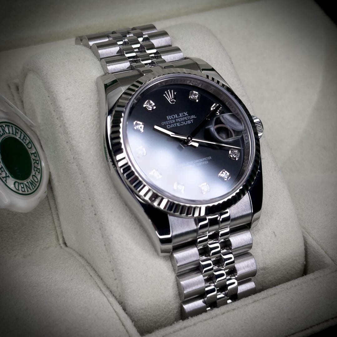 Available now is classy, elegant Rolex Datejust 36, featuring one of the most sought after configurations, rich black dial adorned with factory set diamond hour markers, framed by a white gold fluted bezel and completed with the iconic jubilee bracelet. You can't beat the glossy jet black dial with 10 hand-set diamonds - it is an absolutely stunning configuration. This example is from 2018, and is in excellent preowned condition. Timegraph results and functionality are both flawless! Timestamp: https://imgur.com/a/QhzezBp Price: 10,500 shipped Reference: 116234 Model: Datejust 36 Year: 2018 Size: 36mm Scope of delivery: Comes with inner box, leather card holder, warranty card, user manual, both tags, warranty manual, and certified preowned papers. The bracelet is fully linked and will fit approx 7.5-7.75in wrist. Condition: This watch is in great preowned condition with little to no signs of wear throughout. There are very light hairlines on the case. The crystal is clean. Please refer to our photos as they are accurate and are taken with a professional lens to showcase the true condition of the watch. Please excuse any dust the lens picks up. I am an independent dealer located in Phoenix, AZ. I have plenty of successful deals done here and other places and am happy to answer any questions you have or setup a FT to show you the watch. Check me out on IG: state48luxe and google business State 48 Luxe (125+ 5 star reviews!) or check out my website in my profile! Trades always considered - Thanks for looking!