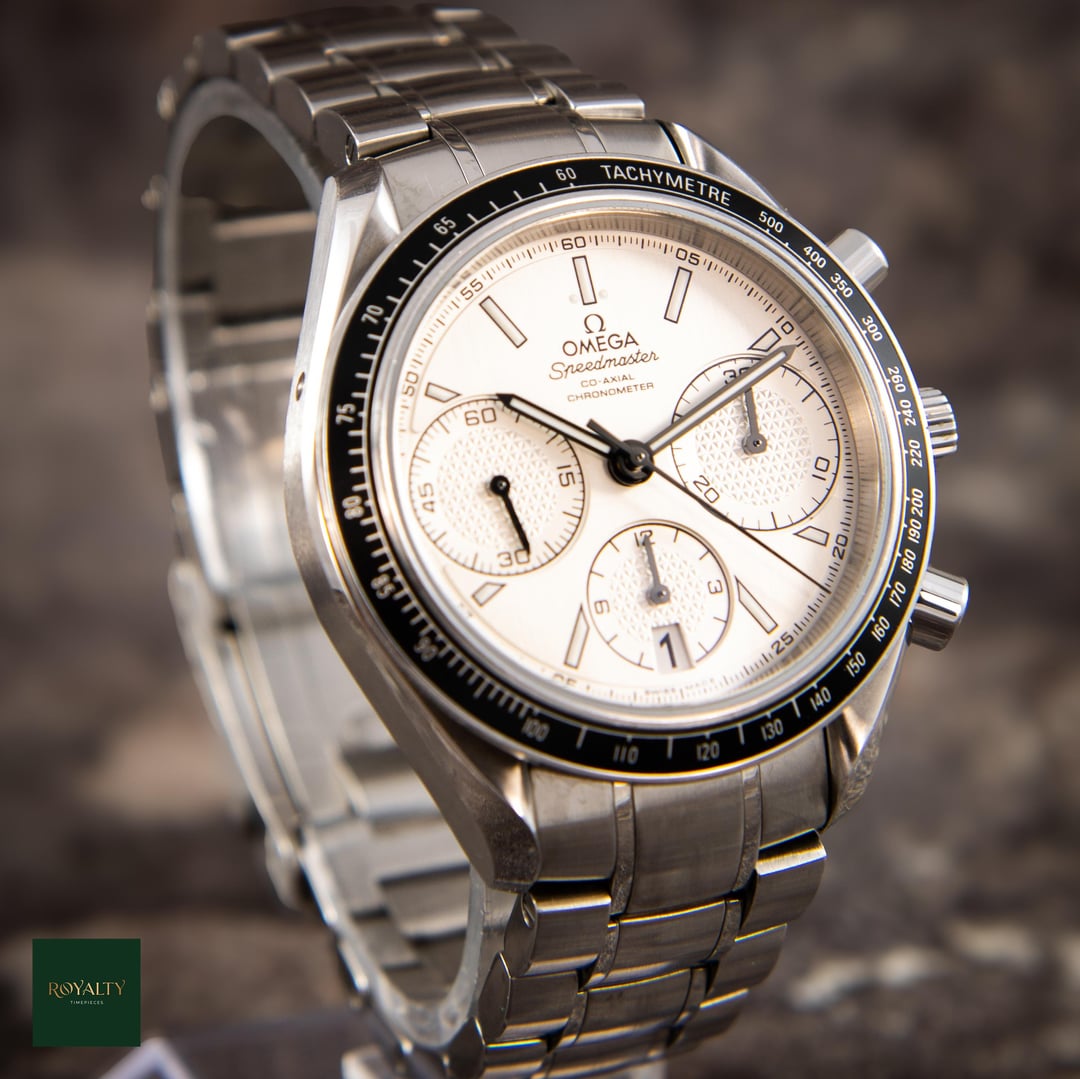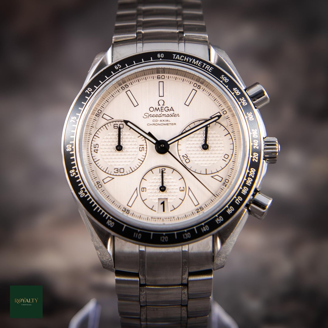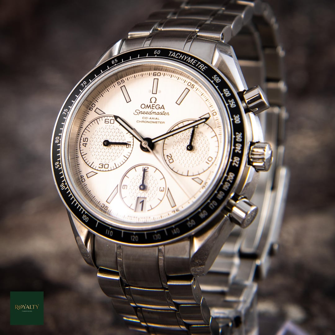 Omega Speedmaster Racing Silver Dial 326.30.40.50.01.001 Case: 40mm Condition: This timepiece is in very good pre-owned condition. As the photos indicate, it is not a 'mint' or 'excellent' example, but it has been well-cared for and shows no major imperfections or flaws. It displays light signs of wear throughout the case and bracelet, consistent with careful and regular enjoyment. The sapphire crystal is clean, and the chronograph functions engage, run, and reset crisply as they should. It presents beautifully on the wrist and is a fantastic daily-wearable icon. Accessories: This offering is a **Complete Set**, ensuring the new owner receives the full Omega experience. The sale includes: * Original Omega Inner (White) and Outer (Red) Box * Original Omega Warranty Card * Original Omega Pictogram Card * Original Omega Chronometer Certificate Card * Omega Instruction Manual * This watch comes on its **original Omega stainless steel bracelet** with all included links. The Omega Speedmaster is a legend, synonymous with space exploration and pioneering spirit. The Speedmaster Racing honors this heritage by channeling the collection's deep, historic ties to motorsports. This specific reference, the 326.30.40.50.02.001, is a particularly striking example, featuring a crisp silver dial contrasted by its signature, textured "Clous de Paris" subdials. This timepiece isn't just a watch; it's a piece of racing history, powered by a modern Co-Axial chronometer movement that ensures world-class precision. $4️⃣0️⃣0️⃣0️⃣ + 🏷️ MSRP: \~5k Shipping available to anywhere in CONUS. Shop with confidence, many references available and authenticity guaranteed! NY residents subject to sales tax without resale certificate IG: royalty.timepieces Timestamp: [https://imgur.com/TL4K0Vi](https://imgur.com/TL4K0Vi)
