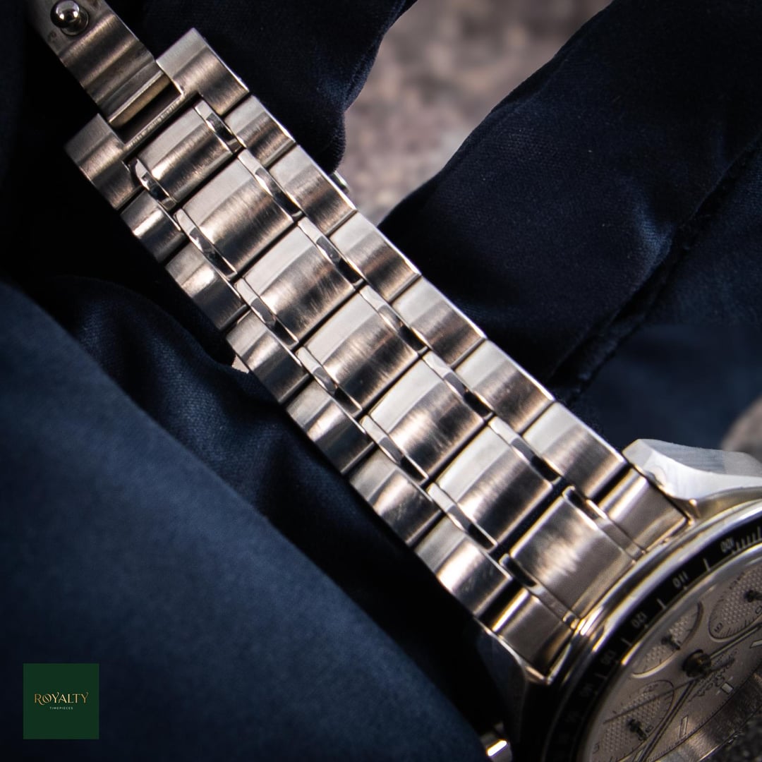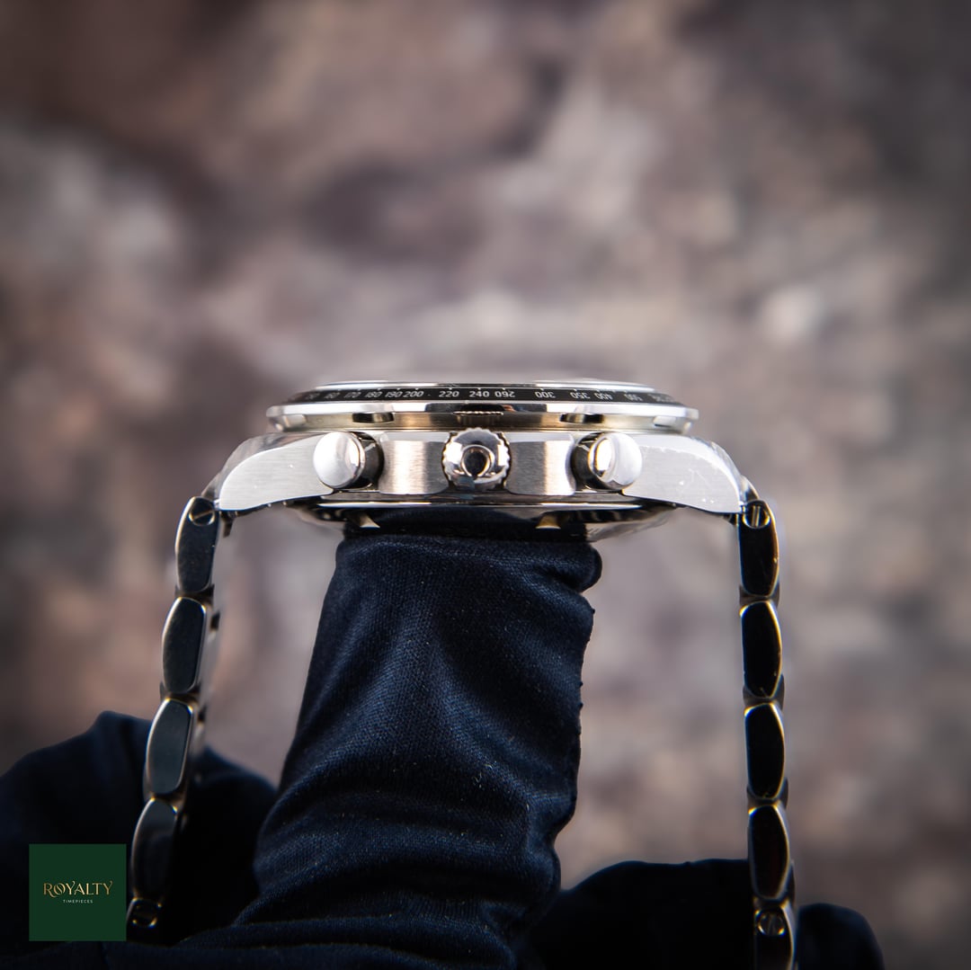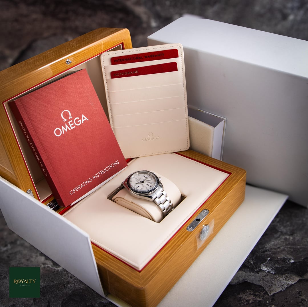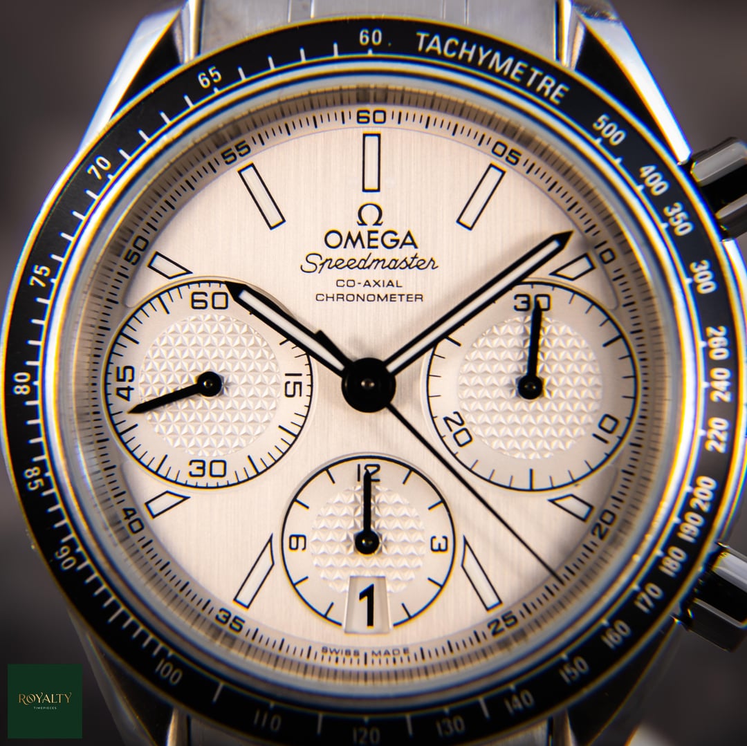 Omega Speedmaster Racing Silver Dial 326.30.40.50.01.001 Case: 40mm Condition: This timepiece is in very good pre-owned condition. As the photos indicate, it is not a 'mint' or 'excellent' example, but it has been well-cared for and shows no major imperfections or flaws. It displays light signs of wear throughout the case and bracelet, consistent with careful and regular enjoyment. The sapphire crystal is clean, and the chronograph functions engage, run, and reset crisply as they should. It presents beautifully on the wrist and is a fantastic daily-wearable icon. Accessories: This offering is a **Complete Set**, ensuring the new owner receives the full Omega experience. The sale includes: * Original Omega Inner (White) and Outer (Red) Box * Original Omega Warranty Card * Original Omega Pictogram Card * Original Omega Chronometer Certificate Card * Omega Instruction Manual * This watch comes on its **original Omega stainless steel bracelet** with all included links. The Omega Speedmaster is a legend, synonymous with space exploration and pioneering spirit. The Speedmaster Racing honors this heritage by channeling the collection's deep, historic ties to motorsports. This specific reference, the 326.30.40.50.02.001, is a particularly striking example, featuring a crisp silver dial contrasted by its signature, textured "Clous de Paris" subdials. This timepiece isn't just a watch; it's a piece of racing history, powered by a modern Co-Axial chronometer movement that ensures world-class precision. $4️⃣0️⃣0️⃣0️⃣ + 🏷️ MSRP: \~5k Shipping available to anywhere in CONUS. Shop with confidence, many references available and authenticity guaranteed! NY residents subject to sales tax without resale certificate IG: royalty.timepieces Timestamp: [https://imgur.com/TL4K0Vi](https://imgur.com/TL4K0Vi)