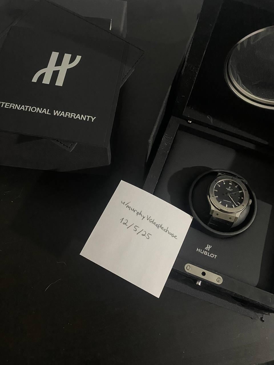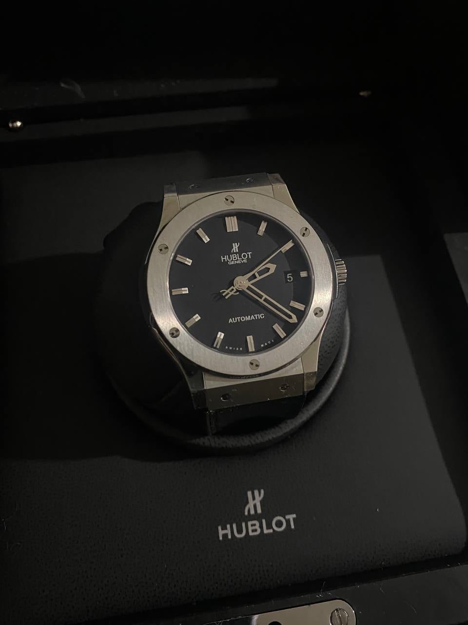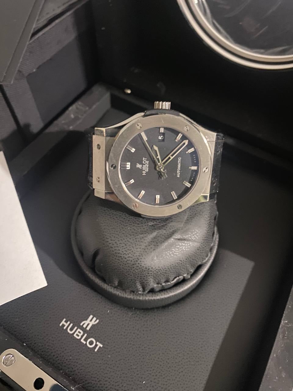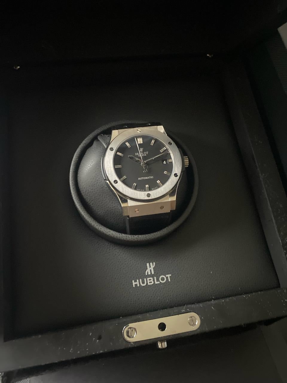 Price: $2300 firm Shipping: $50 signature Payment: Wire Up for sale is the stunning Hublot Classic Fusion Titanium (ref. 511.NX.1170.LR) in excellent condition. The crystal is clean. Full Kit. At 42mm, this watch sits perfectly on the wrist thanks to the titanium case, it is incredibly lightweight and comfortable for daily wear. The case is sharp, with only very light hairline scratches visible under harsh lighting. The sapphire crystal is flawless. The strap is in great shape with plenty of life left.