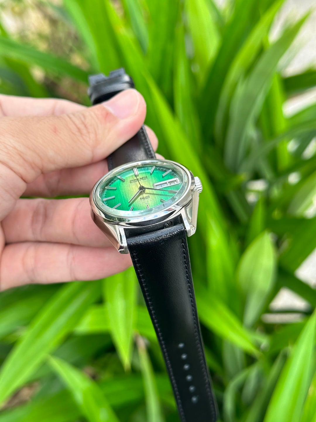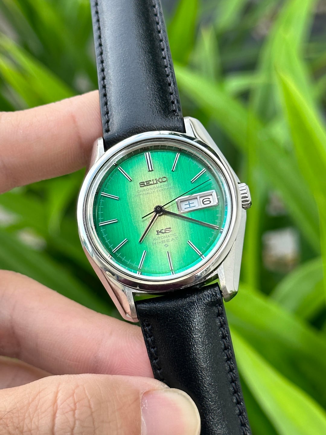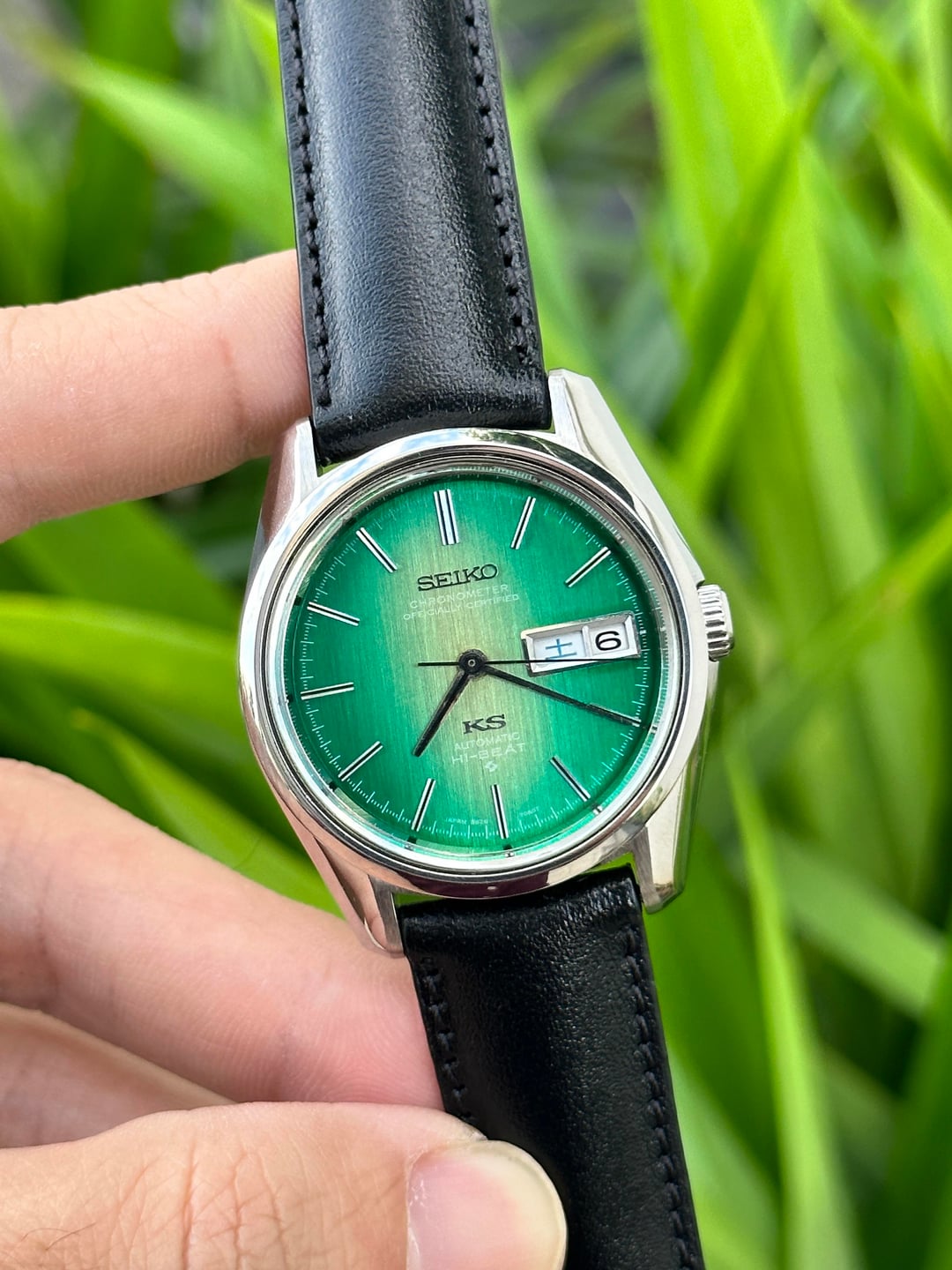 This model was product in the late 1960’s and 70’s exude elegance and class, this one in particular made in April 1971. The applied markers are starkly contrasted in black, as are the atypical hands. The date can be quickset via crown, and the movement can be manually wound as well as by the rotor. You could find the watch appearance in 1971 Seiko Catalog - “Proud to be in hand” • Vibrations Per Hour: 28800bph • Movement: 5626 Automatic with hacking and windings • Date complication, replaced new steel quickset daydate, no more plastic crap • Dimensions of Case: 36mm • Case: Stainless steel, case sharpness all in original condition • Green dial • Come with brand new black leather strap (optional straps available to choose) For more history and specification, please read here: https://grail-watch.com/2018/01/16/two-king-seiko-hi-beat-56ks-chronometers/ Timestamp: https://photos.google.com/share/AF1QipOdNHq5jYjpGXwsY8pR1d-zKsdTv5WXMszxgHu1kZaxUnRb3jOcRODFz_WARyrpVA?key=dzI4XzNMUFBueGJyRFQ0Zm8tVXdSUlJ3Z3V2ekpB Album: https://photos.google.com/share/AF1QipNbdA3eAWQBn1YlI4si1Ez269kXLxiLvCoF493u4T3h0fgM4P24_9_rX6WH3_AWlg?key=aFFtMDdsNUx5TlJGM0NFU0w3YUtzTlFnRTdUSG1R I’ve been selling watches in this sub years now, please check my transaction flair. I’m asking for USD 650 Net via PayPal F&F or direct wire including DHL Express Worldwide shipping with tracking number. Thank you. DHL Express -> US conus, North America, Europe, Australia: 3-5 days DHL Express -> UAE Dubai: 1-2 days