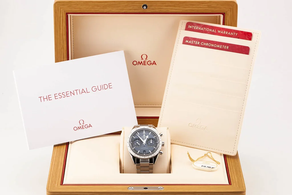 Up for sale is a brand new Omega Speedmaster '57 Blue Dial 40.5mm on Bracelet, reference # 332.10.41.51.03.001. It comes complete with all boxes, papers, booklet, hang tag and Omega Warranty Card dated December 2025.