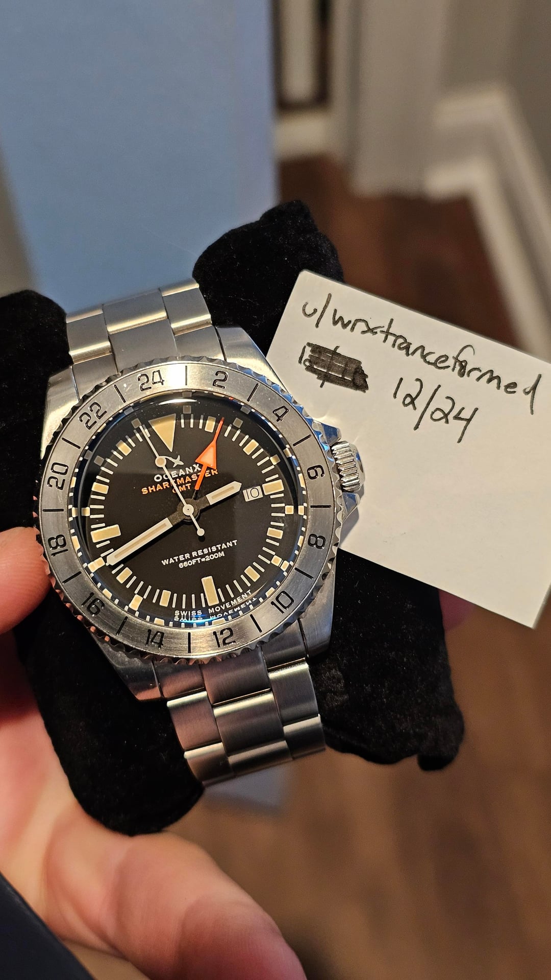 Hi folks! Available for sale is a really cool, grab and go beater, the OceanX Sharkmaster GMT ! This watch is modeled after the vintage Explorers but with a modern twist. The case is 42mm x 49.5mm x 14mm thick. It’s water resistant to 200m and this model is powered by the Rhonda 505.24H quartz GMT movement with a 45month battery life. This movement allows for a true quickset date and independently adjustable GMT hand. Condition wise I would put this at 85%. There are light swirls and scratches in the polished and brushed areas of the case as well as a few micro dings. However, there are no major dings or dents and the bezel / bezel insert only have minor wear. The crystal is free of scratches or chips. The bracelet has typical desk diving marks but is overall in great shape as well. The battery was just replaced on 12/10/2025 so you should be good to set it and forget it for 4 more years. The watch will also come with the box, manual with warranty card dated 2/2019 and extra links. Timestamp for Reddit: [https://preview.redd.it/wts-oceanx-sharkmaster-gmt-swiss-quartz-v0-ijg8boavt59g1.jpg?width=1080&crop=smart&auto=webp&s=60447a81109d3dc2ca83810d2254e3656c7caaa3](https://preview.redd.it/wts-oceanx-sharkmaster-gmt-swiss-quartz-v0-ijg8boavt59g1.jpg?width=1080&crop=smart&auto=webp&s=60447a81109d3dc2ca83810d2254e3656c7caaa3) I am asking $150 which includes fully insured shipping to the US. Not interested in trades at this time, trade offers will be ignored. Please message me with any questions or interest and thanks for looking!