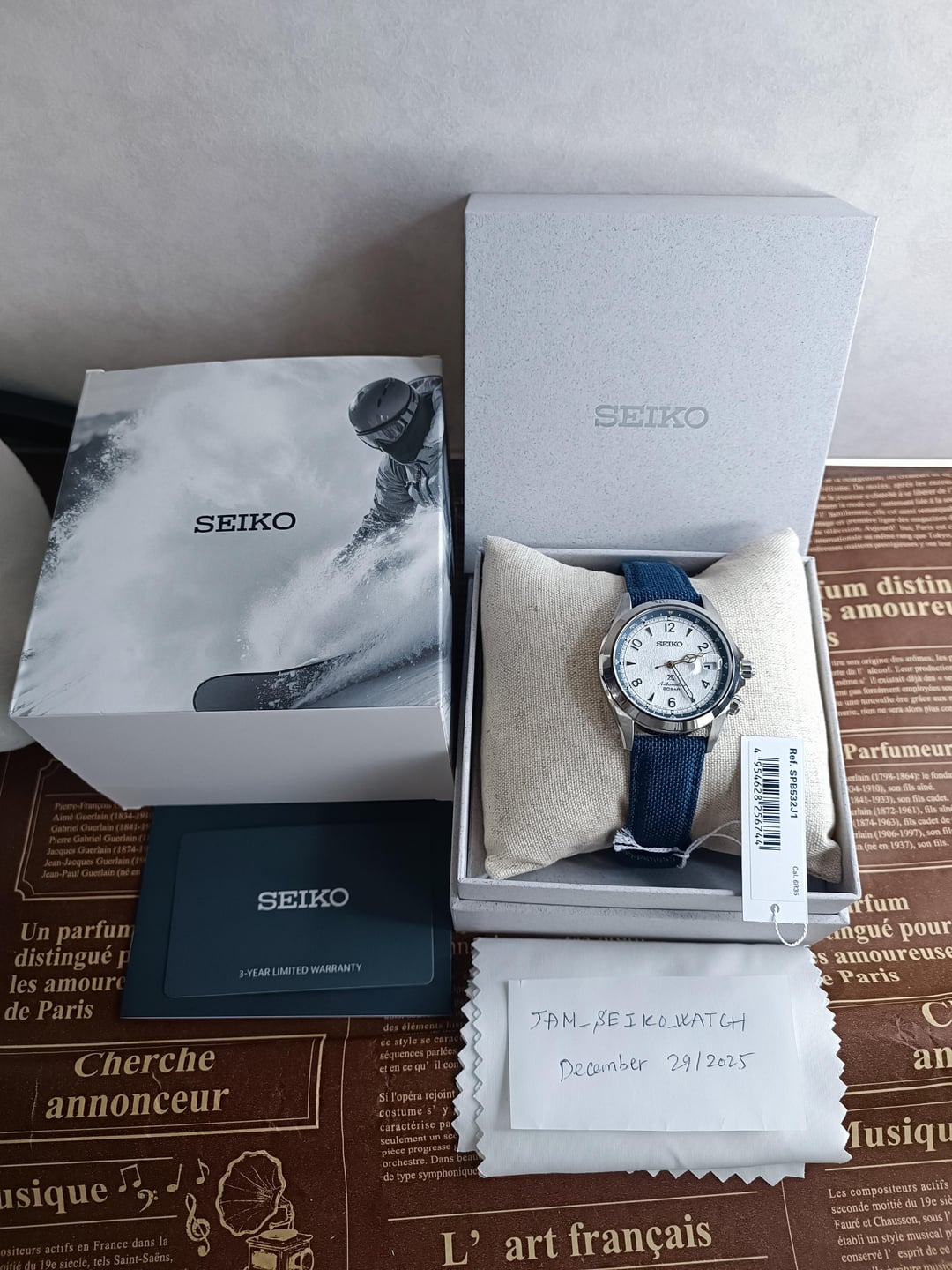 Hello r/watchexchange, I’m offering for sale a Seiko Prospex Land “ Snow flake Alpinist” SPB532J1 – Thong Sia Limited Edition (800 pieces worldwide). The watch is brand new fullkit. This model was exclusively released in Hong Kong, Macau, Malaysia, Brunei & Singapore. --- Condition Brand new, unworn Full set: limited edition box, hang tags, manual, international warranty card. --- Specifications Case size: 39.5mm Lug width: 20mm Movement: Seiko 6R35 – 70-hour power reserve, 200m water resistance Dial: Snowflake-inspired texture, evoking snow-covered mountain peaks with beautiful light play. Crystal: Sapphire with anti-reflective (AR) coating 👉 This is a highly collectible limited edition, and market prices have increased significantly recently. --- Included Limited edition Alpinist watch Limited edition box Papers and tags as shown 📸 Photos / Timestamp: Included in the post! 📩 Feel free to message me if you’d like more photos or details --- Price, Payment & Shipping Price: $1,250 USD (shipping not included) – no trades. Payment: PayPal Friends & Family or Goods & Services (+4.6% fee). Shipping: FedEx Express worldwide (2–4 days). Shipping cost: $50–$80 USD depending on destination. --- Thanks for looking!