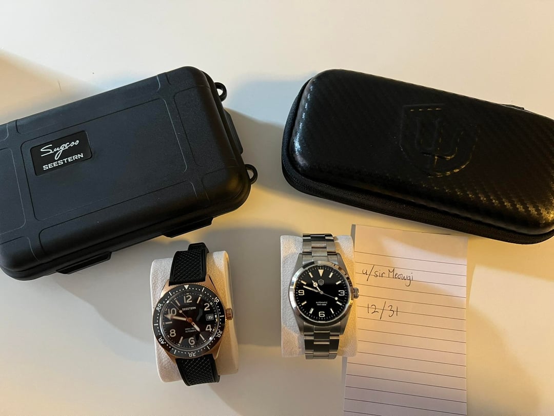 Downsizing the collection! These two are imo very well taken care of and should be near mint and will be shipped with their original boxes. Happy to send more photos/video on request :) Shipping CONUS only. No trades. Seestern 434-2 Rose Gold $160 OBO Watchdives WD6610 $180 OBO Paypal / Venmo / Zelle