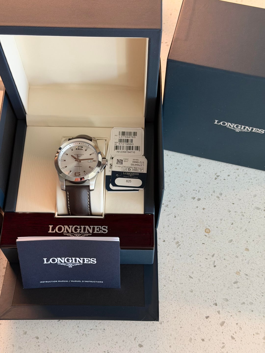 Longines Conquest 41mm L3.759.4. Quartz. Silver dial. Watch & box. Original strap & clasp **$499** / Zelle, Venmo, or WU accepted. Timestamp: https://imgur.com/a/2EZ61Qu I have tons of references on multiple platforms including WatchExchange. I am more than happy to show these.