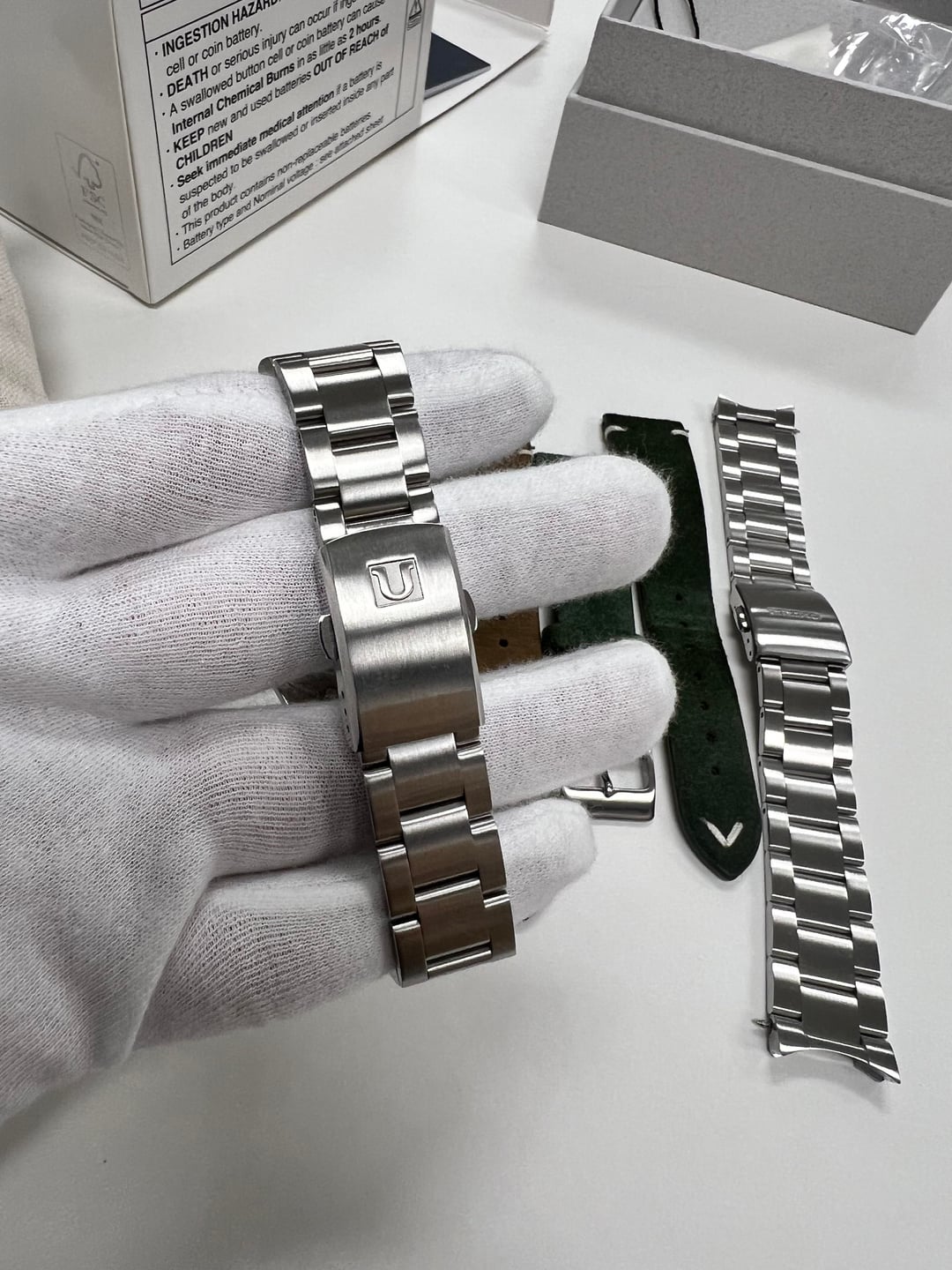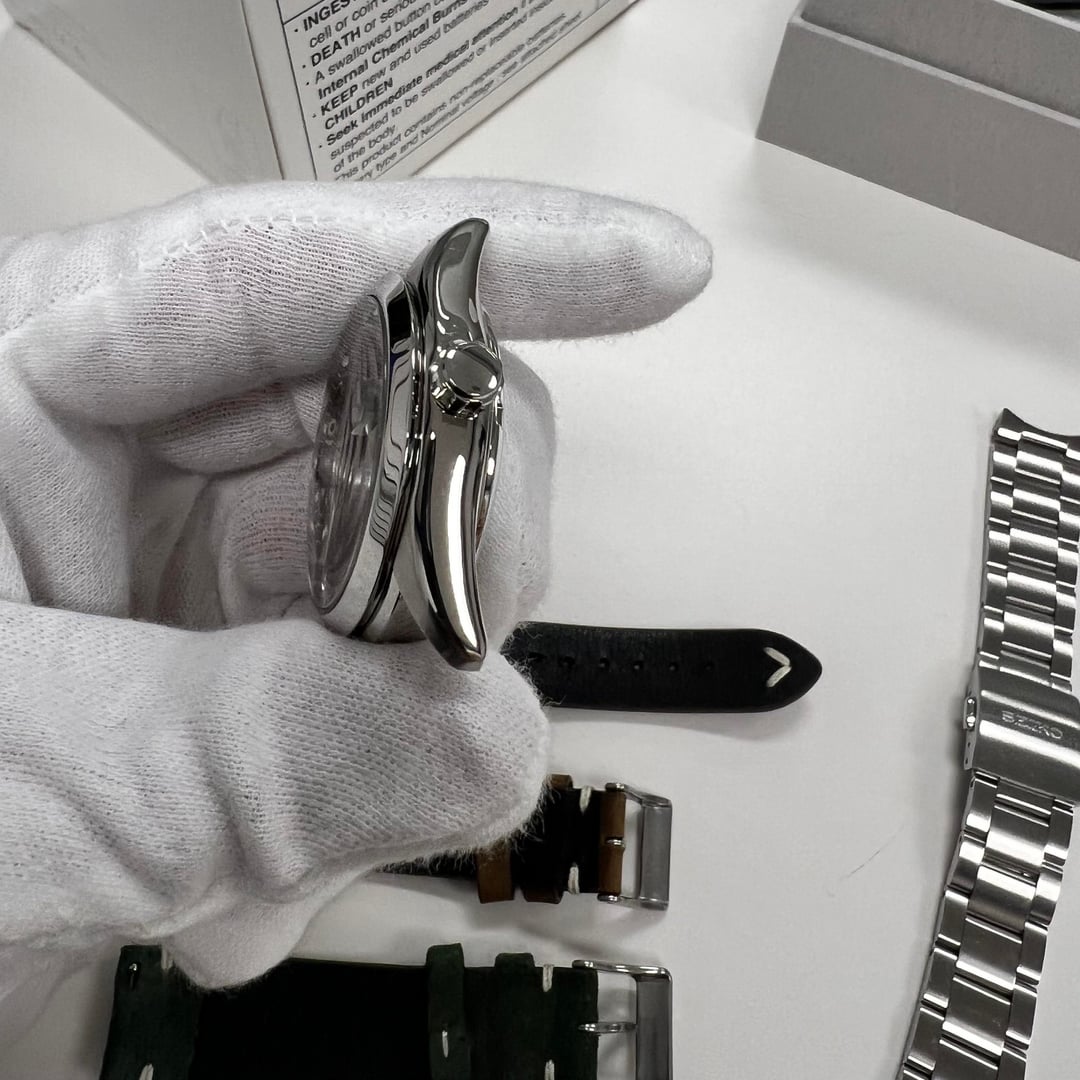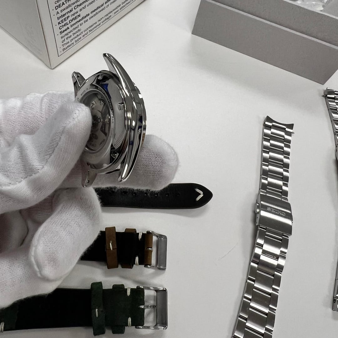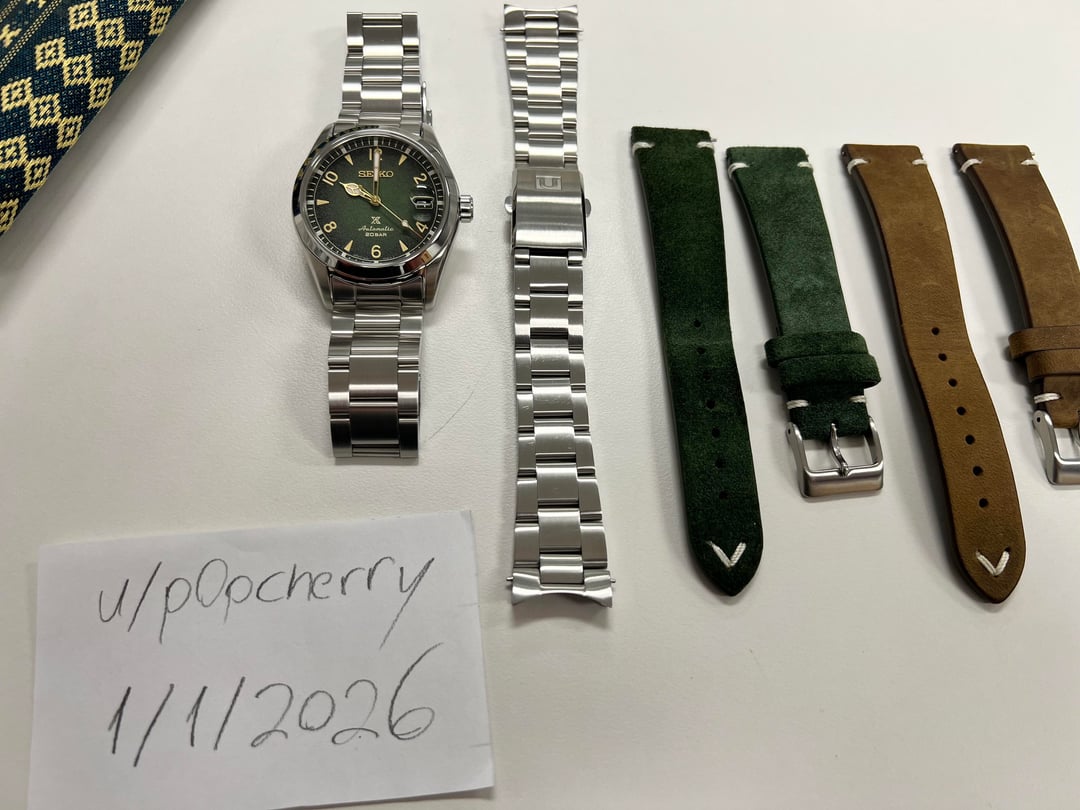 Seiko Prospex SPB155 - Green Dial - Luminous Hands Comes with original box & papers Comes with better quality Uncle Strap + original Seiko one of course as well as a suede green strap and brown leather strap. Added a cyclops to the crystal - bonded with uv glue and can be removed. This timepiece features a 38mm steel case paired with a high quality steel bracelet. It showcases a distinctive green dial and is powered by a precise automatic winding movement. The watch is designed with a water resistance of up to 200m. Asking 650 SHIPPED IF UNITED STATES