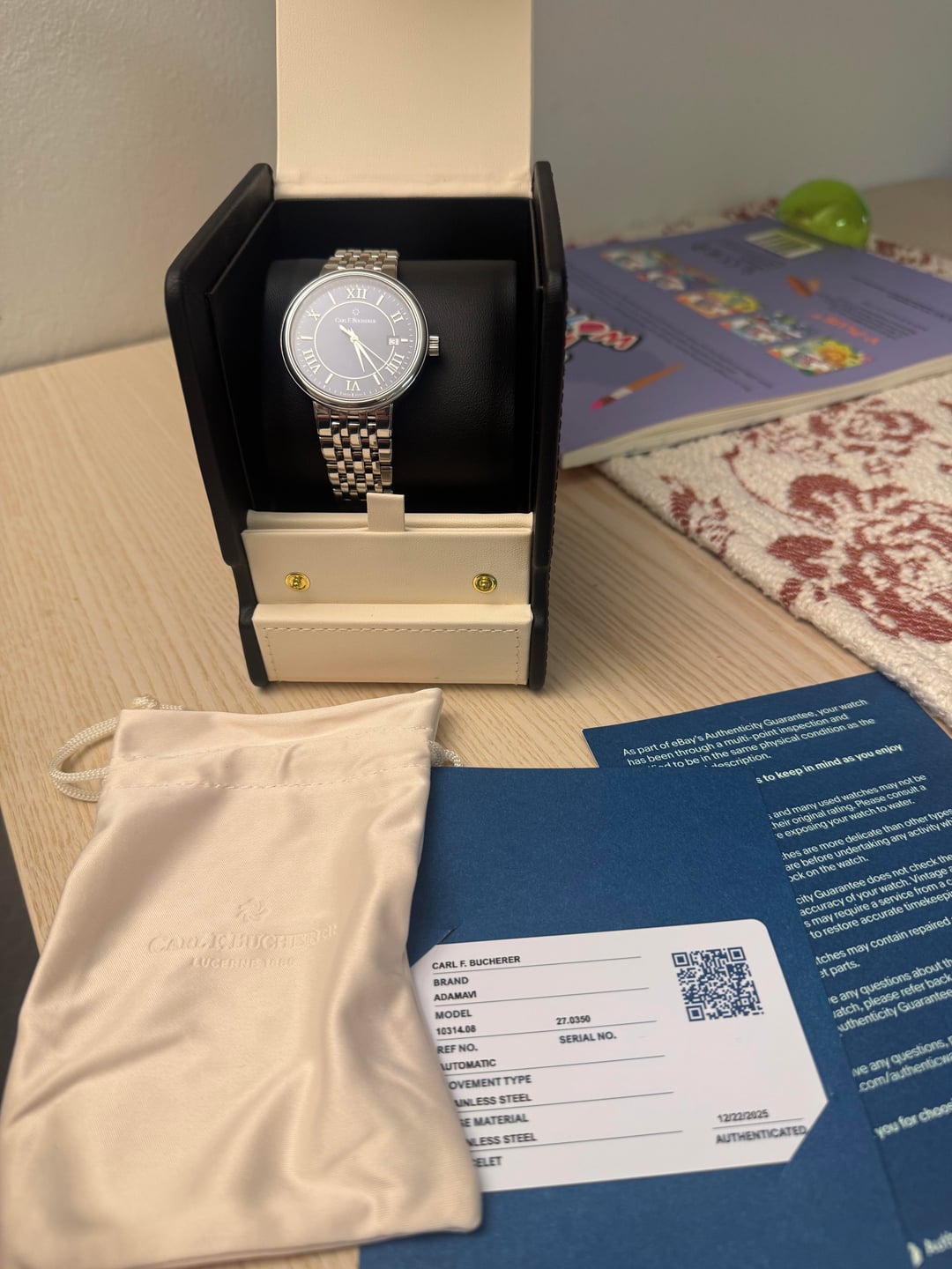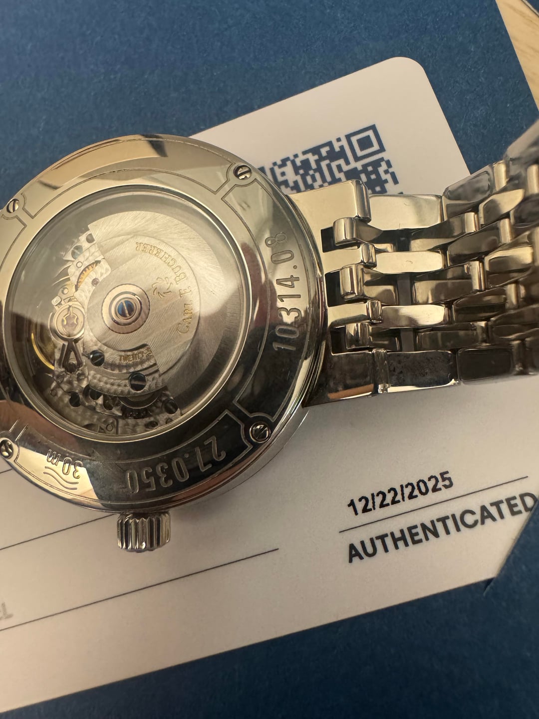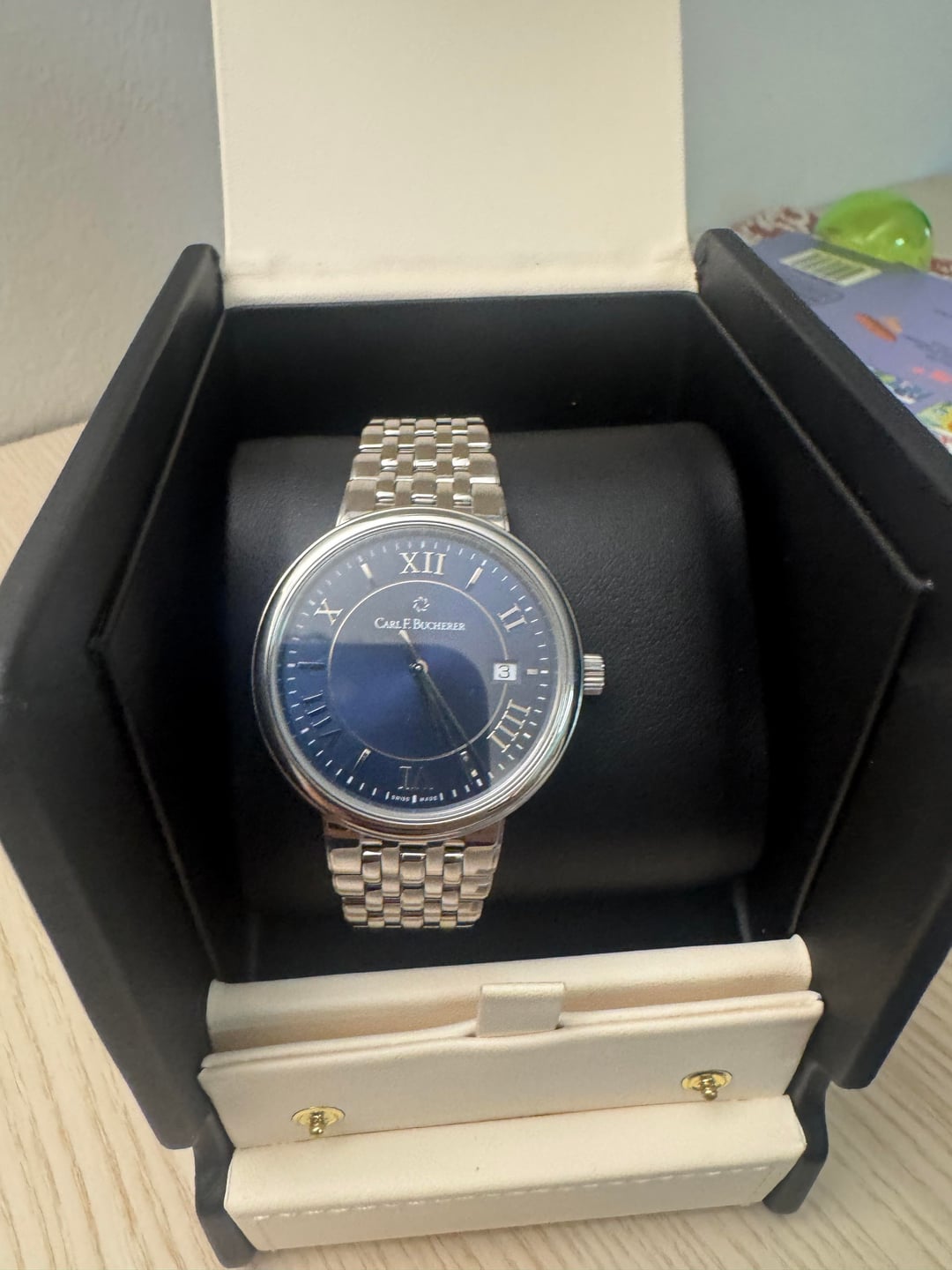 [Album+Timestamp](https://imgur.com/a/6etW6IR) [Video](https://imgur.com/a/carl-qUd3G4U) Hey everyone — feel free to reach out if you have any questions. Up for sale is a Carl F. Bucherer Adamavi Automatic with a blue dial in a 39mm case. It’s a great all-around size that works well for daily wear but still looks sharp dressed up. The design is clean, classic, and understated. The movement is nicely finished with perlage and heat-blued screws, details you usually see on higher-priced watches. The bracelet uses screws instead of pins, which is a nice quality touch. Overall, this watch really punches above its weight and reflects the attention to detail CFB is known for. The watch will come with an official eBay Authentication card, confirming it passed inspection and is 100% authentic. Condition • Like-new showroom condition with tags • Never worn, running perfectly • Very light handling marks (barely noticeable) • Sapphire crystal is clean and scratch-free Details • Brand: Carl F. Bucherer • Model: Adamavi Automatic • Reference: 00.10314.08.55.21 • Dial: Blue • Case Size: 39mm • Movement: Swiss automatic • Crystal: Sapphire • Swiss made Included • Leather travel case & pouch • Original hang tag (MSRP $2,750) • eBay Authentication card Price $749 shipped — lowest priced blue dial available (checked thoroughly) Payment • PayPal Friends & Family • Zelle • Bank wire Shipping • USPS Priority • Signature required Location • California • CONUS only Notes I’ve sold multiple higher-end watches and can provide solid references if needed
