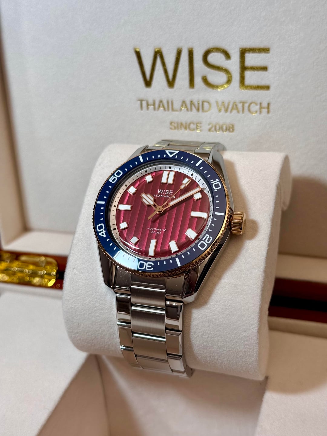 ![[WTS] Wise Adamascus AD8 “Shades of Thailand” Limited Edition of 250 - Stunning Textured Wine Red Dial/Blue Ceramic Bezel - 904L steel - On the Fly Clasp - Full Kit - The Thai Grand Seiko for Only $800 shipped CONUS (SOLD OUT Wise and my most complimented watch) 4](https://cdn-cf.watchpatrol.net/600x600/img/full/d62ad61156a04d49dc7b48ccb37716f8cf33428a.jpg)