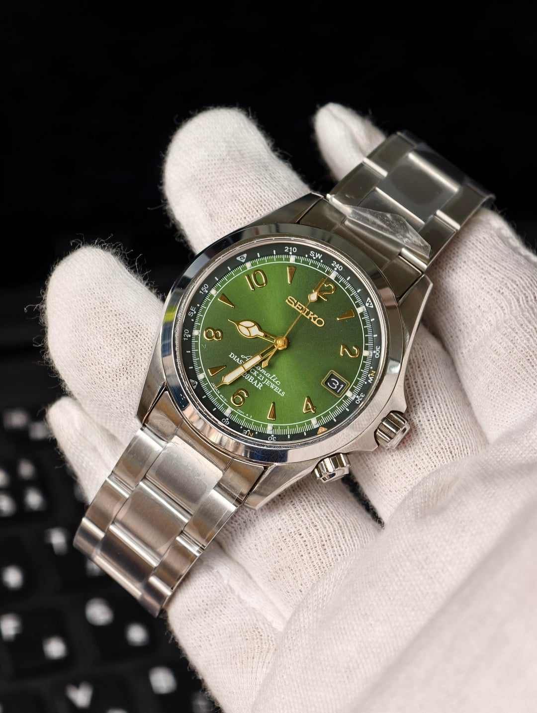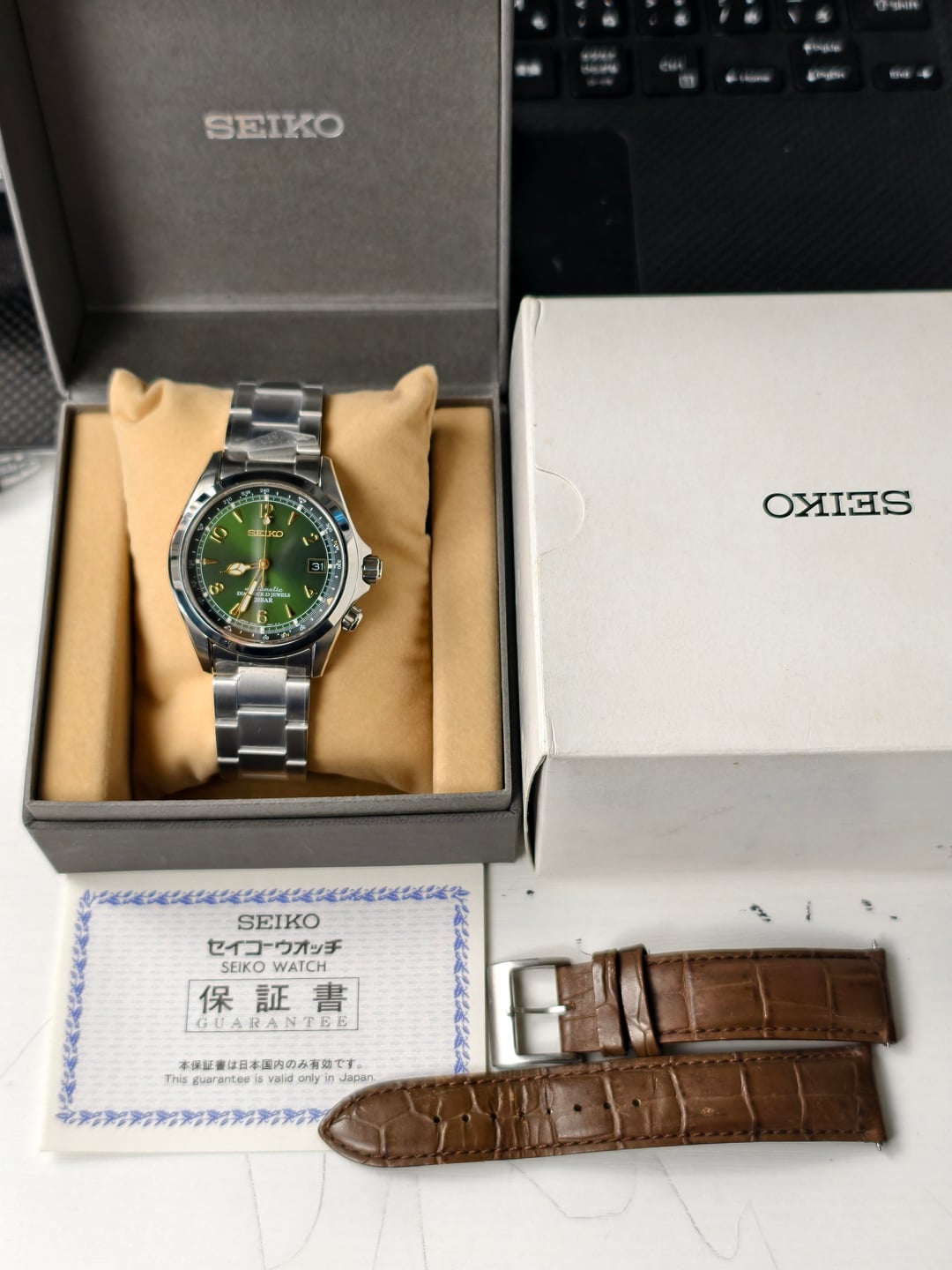 Hi everyone, Up for sale is my Seiko Alpinist SARB017, one of Seiko’s most iconic and discontinued models. Beautiful green sunburst dial, classic proportions, and made in Japan. Condition Pre-owned, excellent condition Very light signs of wear only, no major scratches or dents Runs smoothly, keeping good time Crystal is clean Specifications Model: SARB017 Case size: 38mm Movement: Seiko 6R15 automatic Crystal: Sapphire Water resistance: 200m Made in Japan Included Watch Original Seiko box Warranty card (blank / unfilled) Original Seiko leather strap (good condition) Original Seiko stainless steel bracelet for Alpinist (brand new) Full links Price & Payment Price: $900 USD Shipping: $80 worldwide via EMS / FedEx Payment: PayPal F&F or G&S (+4.6% fee) Please comment before PM. Feel free to message me if you need additional photos or videos. Thanks for looking!