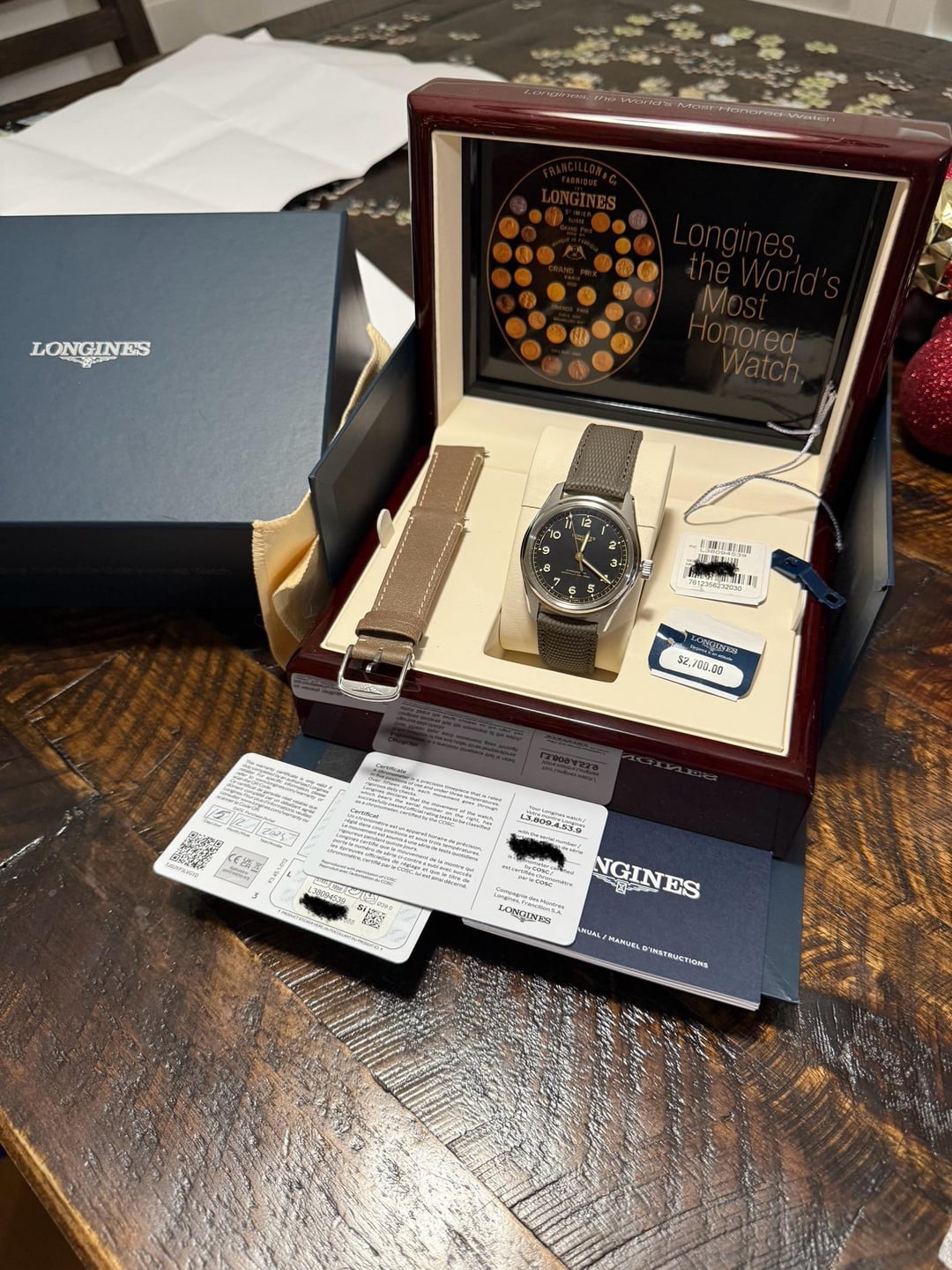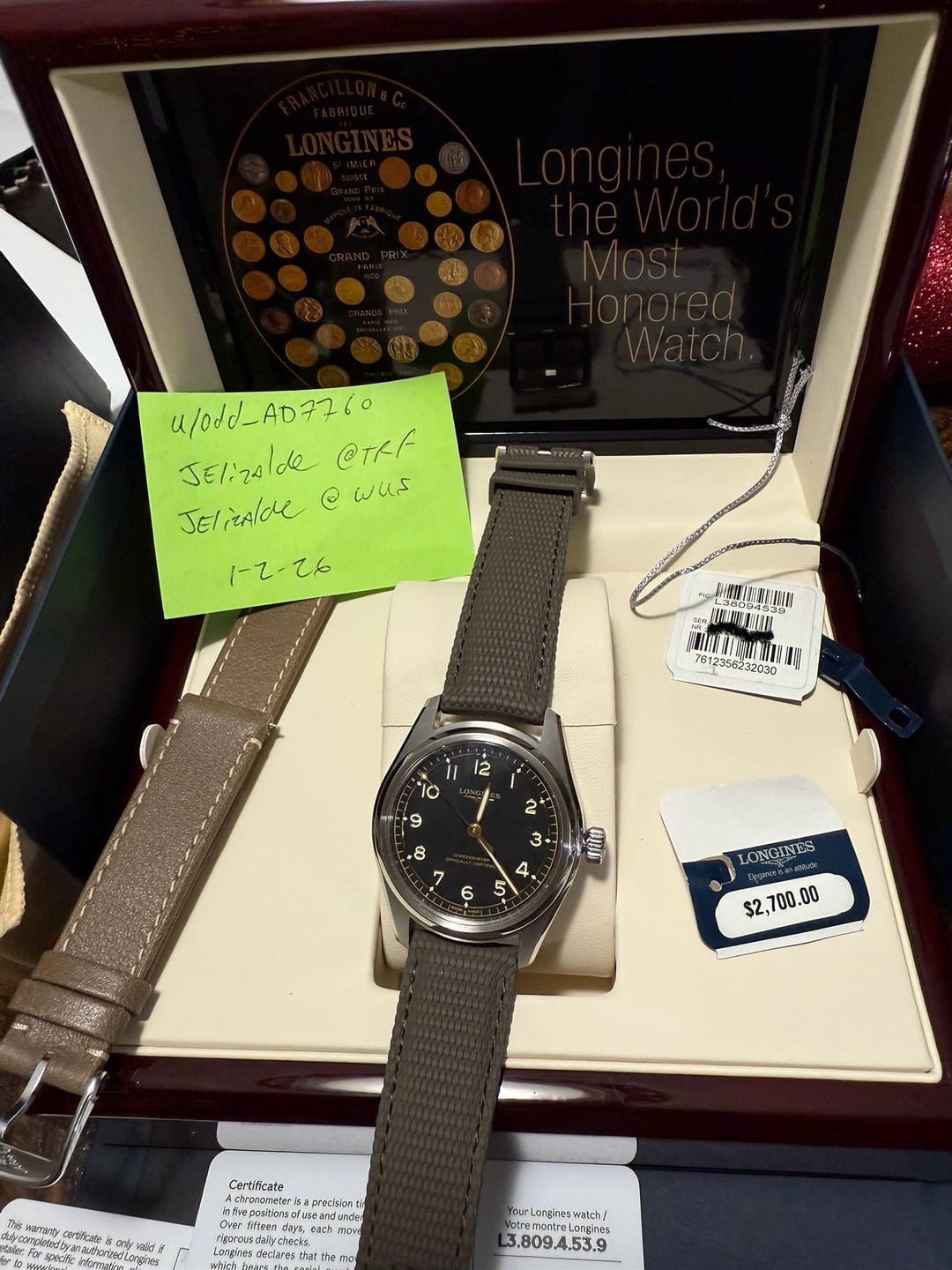 WTS LNIB Spirit Pilot Longines. Card dated 12-15-25. Comes w additional Longines leather strap as shown. Wire, Zelle, Venmo, PP f&f or face to face in SoCal. Facetime available $1800 plus shipping. Shipped CONUS.