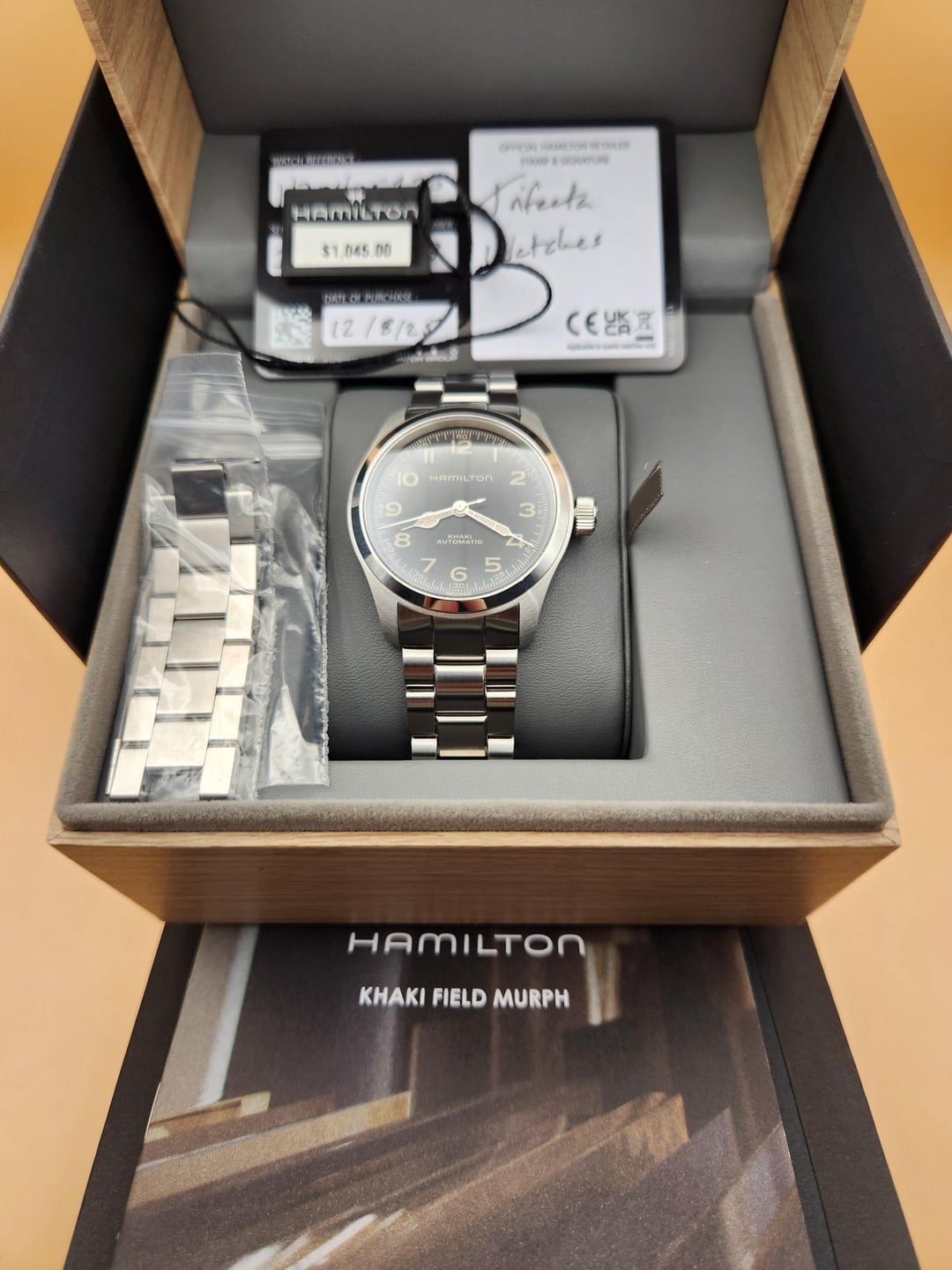 [WTS] Hamilton Khaki Murph 38mm on OEM bracelet Full 2025 set $699 shipped conus