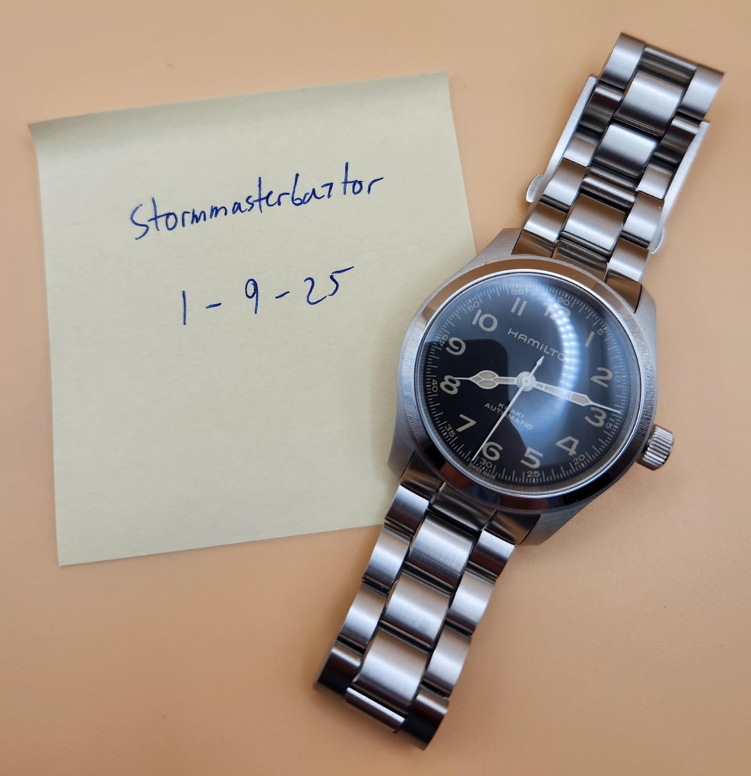 ![Thumbnail [WTS] Hamilton Khaki Murph 38mm on OEM bracelet Full 2025 set $699 shipped conus 3](https://cdn-cf.watchpatrol.net/120x120/img/full/873476b6c457e93227afbf2ea82d583ec04c9d09.jpg)