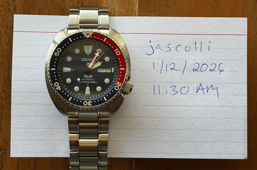 Hi all. My Seiko Turtle PADI is up for sale. It’s in great shape other than one little ding. Runs great. No issues. Full kit. $215 Thanks Jason