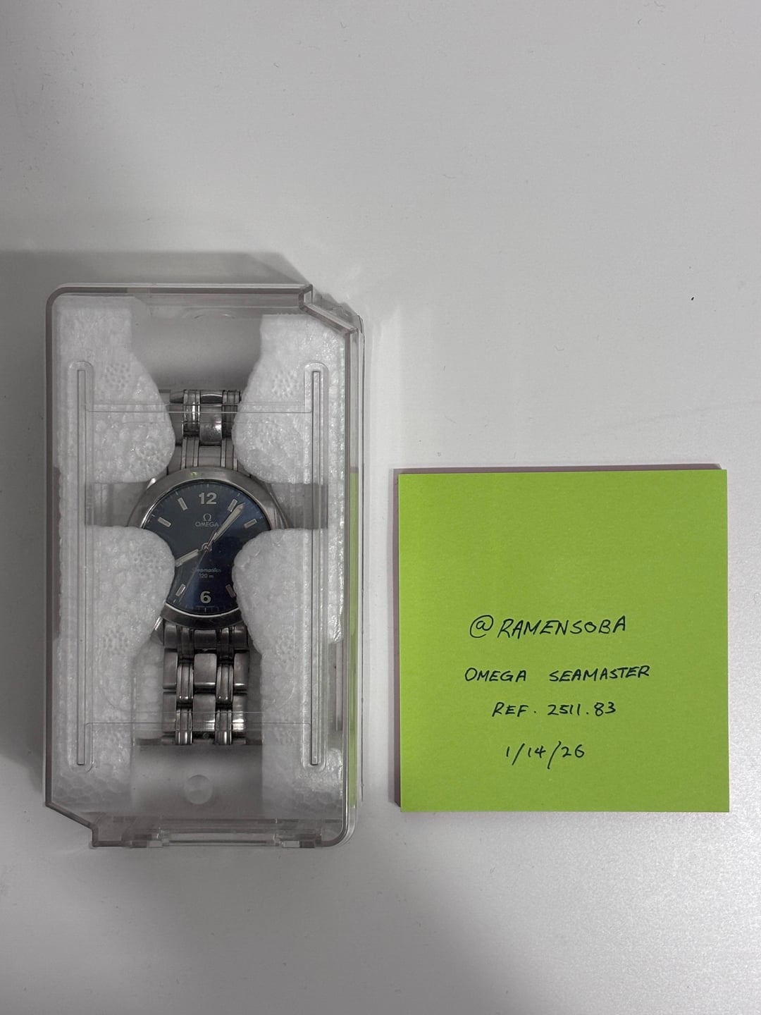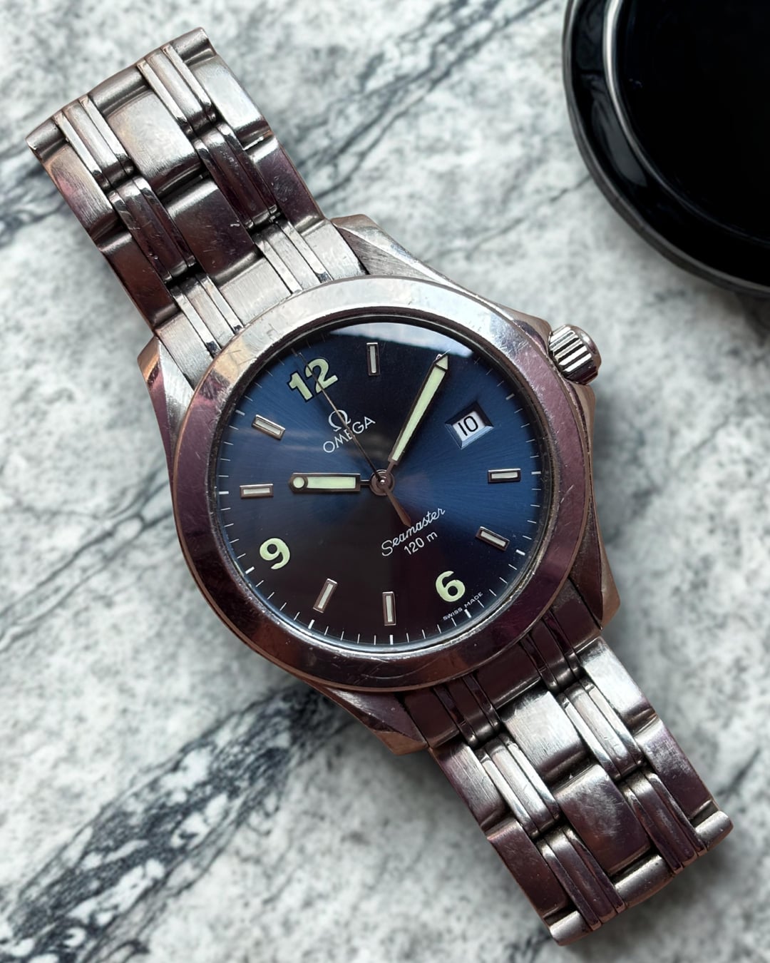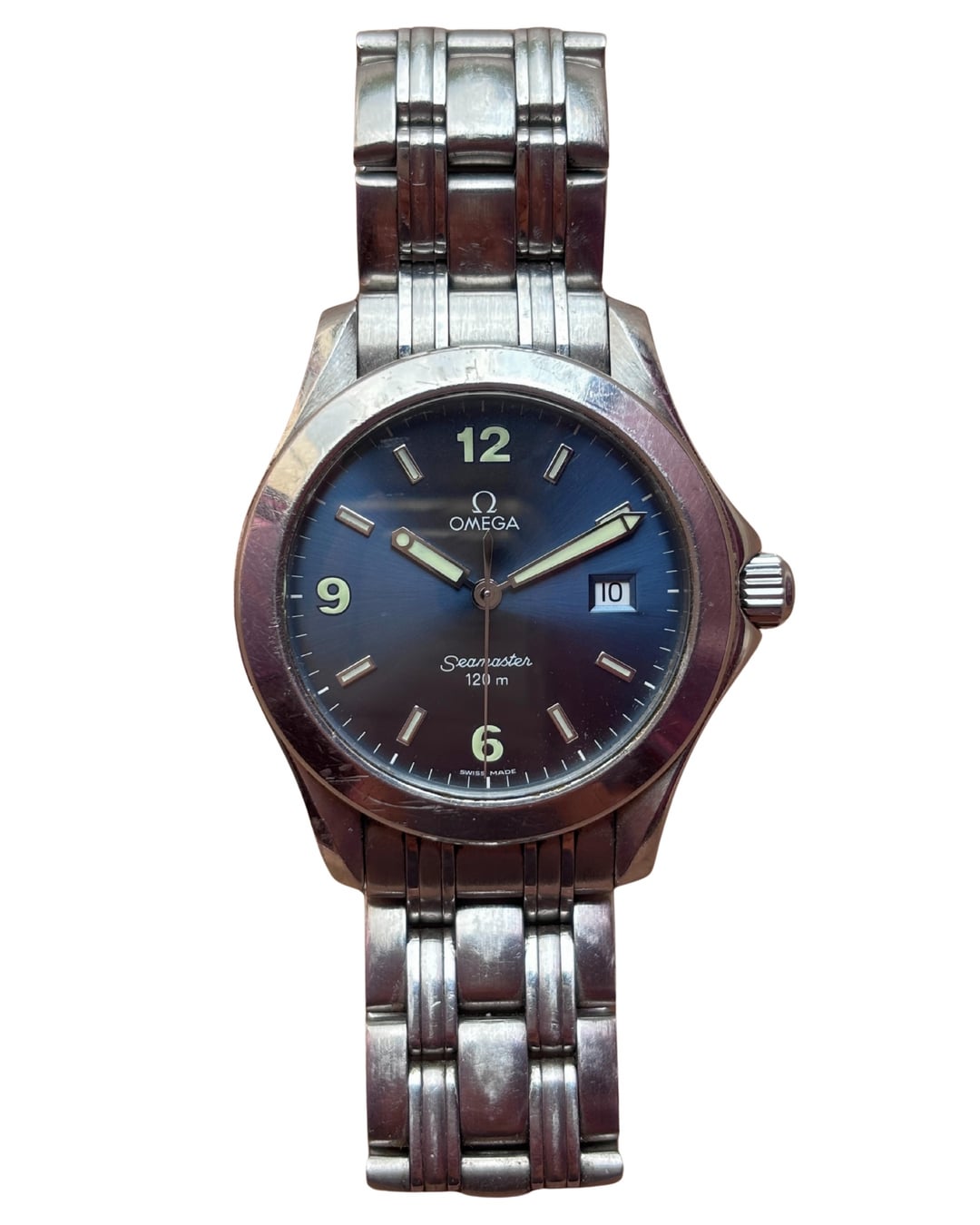 **Brand:** Omega **Reference:** 2511.83 **Year:** 1998 **Material:** Stainless steel **Case Diameter:** 36mm **Strap Size:** 18 mm **Crystal:** Sapphire **Caliber:** Caliber 1538 quartz precision movement with rhodium plated finish **Strap:** Stamped steel 1501 bracelet with 823 endlinks **Box/Papers:** No **Price:** $1000 shipped or best offer **Shipping:** FedEx International Priority with shipping and tariffs covered **Payment:** Wise, PayPal F&F (any fees borne by buyer) ***Worth Reading*** The reference 2511.83 presents a quieter interpretation of the Seamaster, defined by clarity of design rather than overt sport intent. Produced for the Japanese market and seldom seen outside Asia, this reference is distinguished by a 6-9-12 dial configuration, a design choice that departs from the assertive dive watch language typically associated with the Seamaster line. The case in stainless steel is classically proportioned at 36 mm and is highly versatile on the wrist. The signature twisted lyre lugs introduce a subtle sculptural quality, lending a sense of faceted refinement to the case profile without visual excess. On the wrist, the 2511.83 occupies a space between categories. Its understated design allows it to move easily between casual and more formal settings, avoiding the visual weight of contemporary dive watches. Discontinued and uncommon, this Japan exclusive Seamaster 120M rewards those drawn to nuance rather than the conventional. An understated Omega, best appreciated by the observant. Now available. ***Condition Report*** This Seamaster 120M is in good, unpolished condition. There are wear marks which is consistent with a watch of its age. The sunburst blue dial is pristine with no blemishes. The sapphire crystal is flawless. The signed crown screws down tight. The movement is powered by the quartz Caliber 1538 with a battery life of 48 months. The battery was replaced in December 2025 and the movement is keeping perfect time. The original signed steel 1510 bracelet with 823 endlinks fits a 6.5” wrist at maximum. The watch will be shipped in a travel coffin. For a peace of mind, interested buyers are encouraged to reach out for a FaceTime call or request for a custom timestamp. Thanks for looking and have a good day!