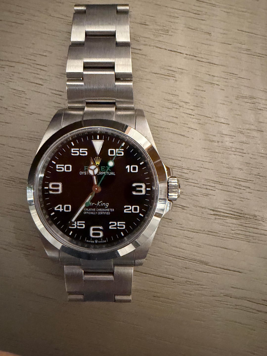 Up for sale is the fun and different Rolex Air King current model. Bought it direct from AD. Comes with full kit. You can see minor signs of wear as I have worn it for a few months but otherwise no issues. I will cover insured shipping anywhere in the US. Looking for $7900. Cheers!