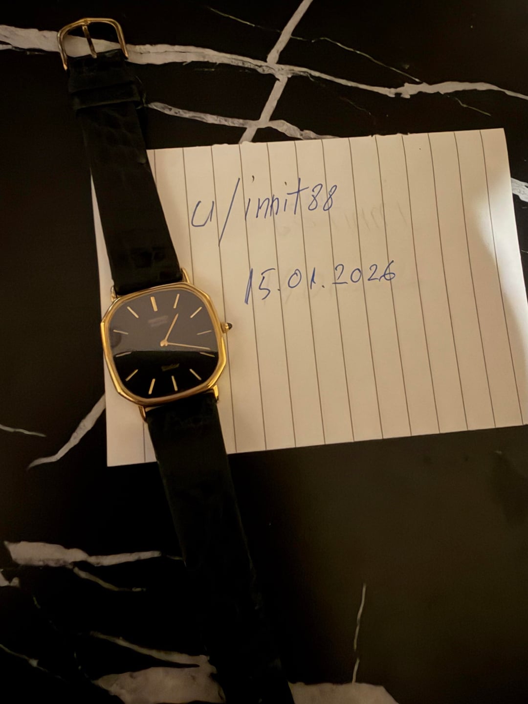 I will be selling part of my wife’s and my collection. A collection of extremely rare pieces curated carefully over the years, a collection fueled by a deep passion for vintage watches (shopping addiction). All the watches are functional and almost mint condition aesthetically, however if there are defects they will be pointed out in the ad. To celebrate the metal that has people crazy over it for millenia and will probably continue to do so for millenia to come we are continuing off with another solid gold piece: a 10k solid gold Seiko Dolce 6020-5950 with an incredibly rare and unique dial. Seiko models marked “10kt st steel base” or “14k st steel base” are still solid gold cases of either 10kt or 14kts but they are slightly thinner than the ones that have just a steel back, that is because underneath the gold case lies a reinforcement structure made of steel holding the mechanism. There is a slight mark on the case as can be seen in the 5th photo. 699$ insured shipping included EU Based Extremely rare piece, unlikely to come across another one of these in the near future, possibly never! Out of respect for fellow collectors out there the items are being exclusively put for sale here. After 15 days they will be posted on ebay/catawiki. Spoiler alert! Next week we’ll be moving on to stone dial watches. Stay tuned