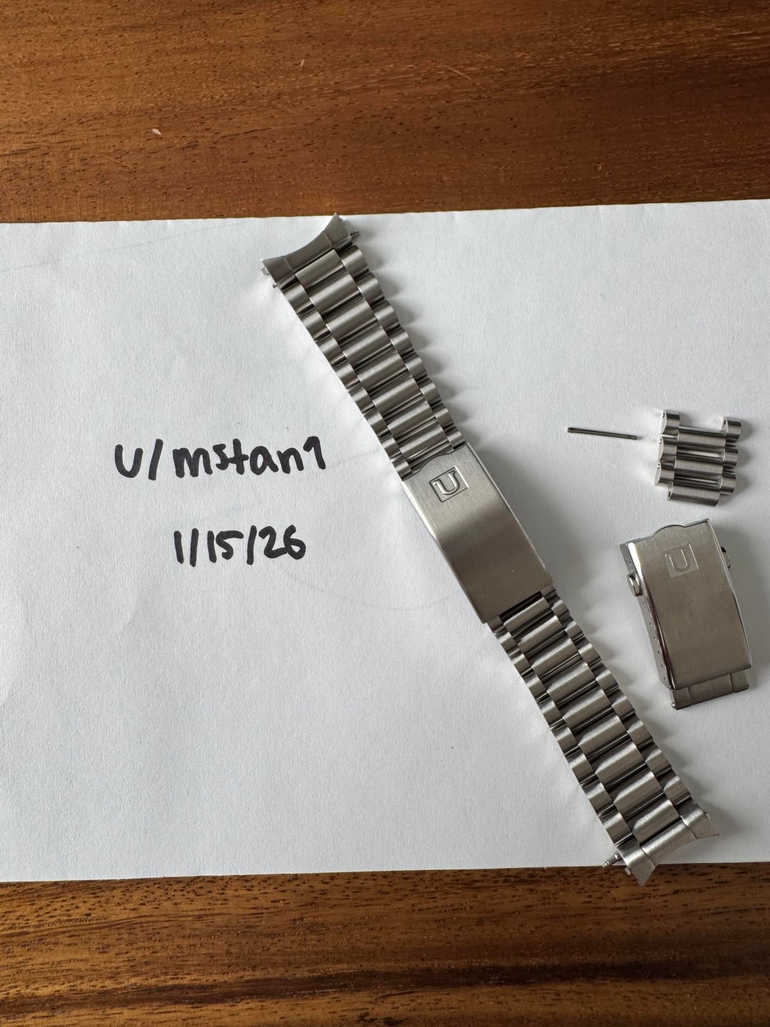 For sale is an Uncle Straps US 1450 Bracelt for the Omega Aqua Terra in great condition. This bracelet is for the 38mm Aqua Terra model and comes with the push button clasp (although I was never able to get this clasp on the bracelet itself). Bracelet was purchased direct from Uncle Straps last year and has only been worn on the watch a few times. Price: $65.00 (Includes fully insured shipping to CONUS) Payment: Zelle or PayPal preferred. No Trades