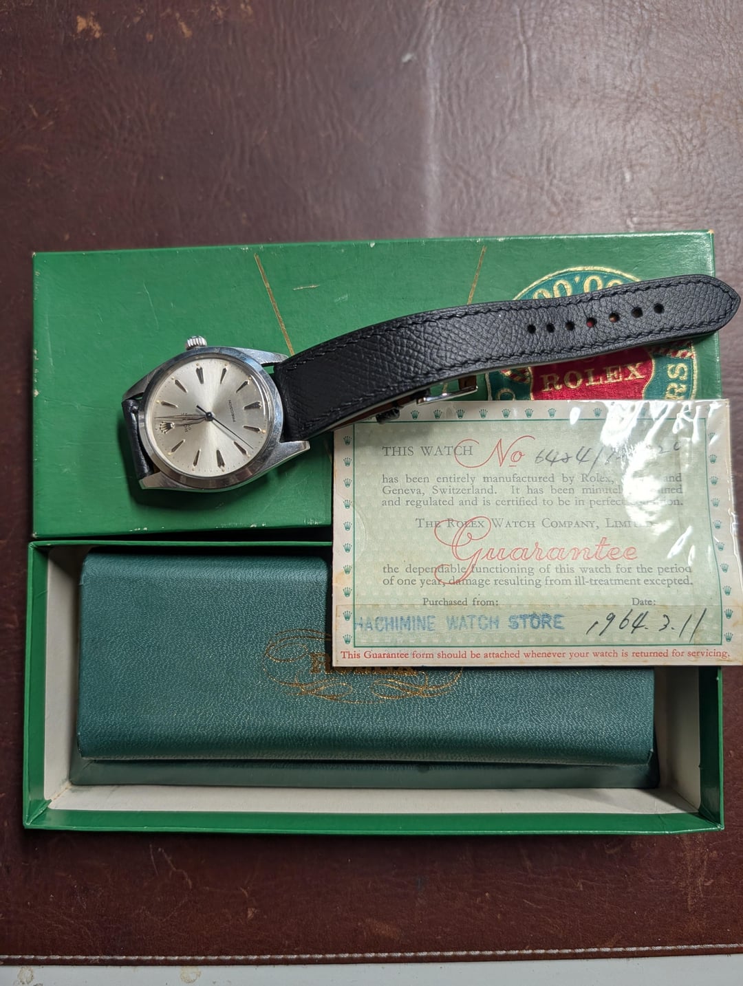 Hi WatchEx, Up for sale is this beautiful vintage Rolex with card dated 1964. Finding one with box and paper is pretty rare for this one. A perfect watch for daily, memorable, collection or a gift for someone birthyear The watch cosmetically is in great shape. Definitely one of the better one out there. Comes with original buckle and AM strap. The watch is running but appear to be fast. About 40-50/day. Likely need service (service history unknown) Price $2500 + shipping Video call and local pick up welcome 📍New Haven CT