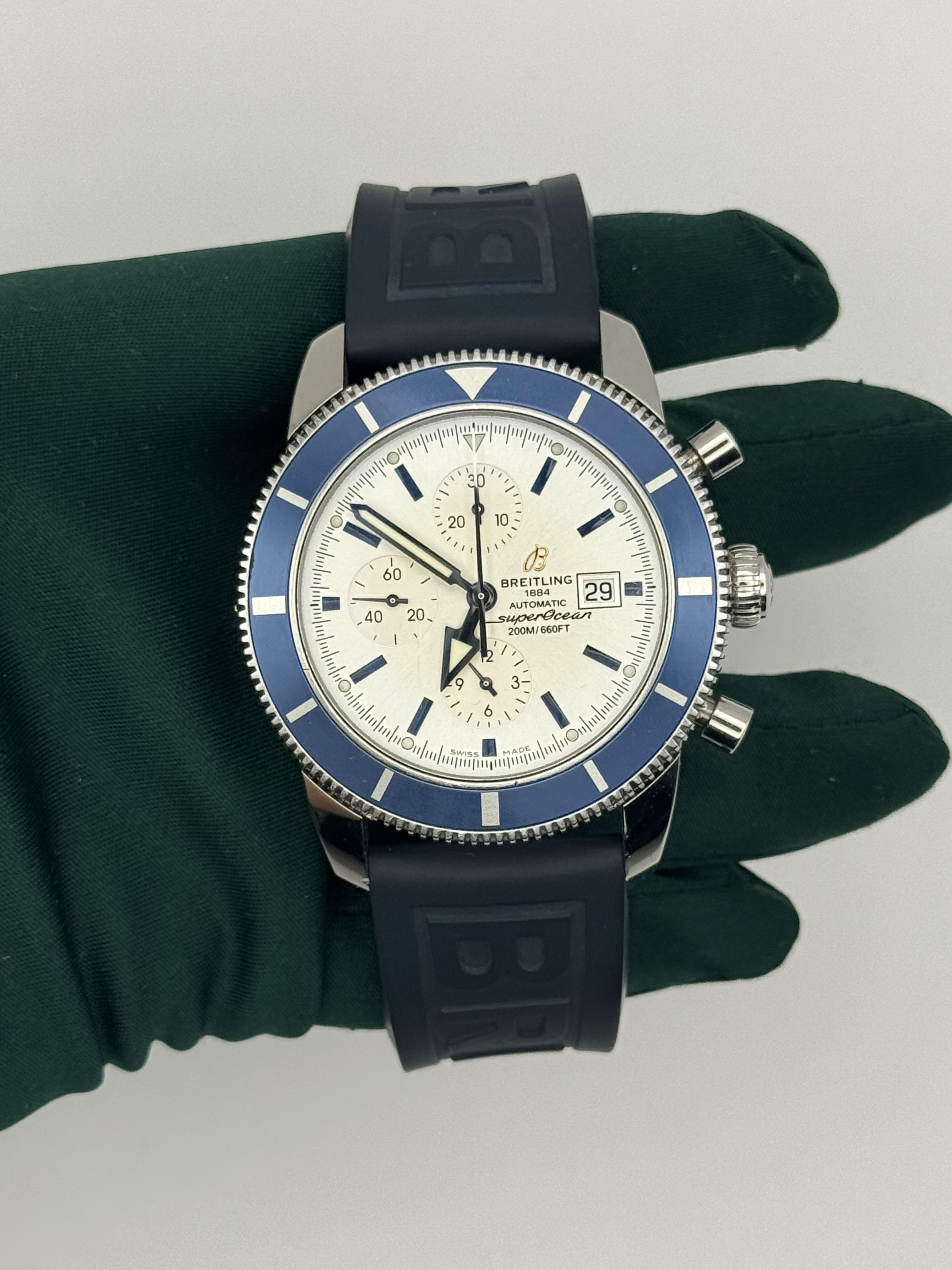 \*\*\*Please refer to photos showcasing the condition and signs of wear throughout the case, bezel and bracelet of the watch as previously mentioned in 'pre-owned condition'. Some marks on sapphire crystal (see photos). This Breitling Superocean comes on a OEM rubber band. Watch is running and setting amazing.\*\*\* Model: Superocean Reference Number: A13320 Case Size: 46mm Box: NO Card/Papers: NO Condition: PRE-OWNED Price: $2000+Shipping Timestamp & Additional Photos: [https://imgur.com/a/cWBj4wD](https://imgur.com/a/cWBj4wD) \*\*\*Accepted Payment Methods\*\*\* Zelle, Wire, Wise & Paypal F&F \*\*\*Shipping & Handling\*\*\* We offer FedEx Overnight, 2-Day & Ground shipping options. (Feel free to reach out to us about freight rates.) \*\*\*Offers & Negotiations\*\*\* While offers may be an option, we may not accept them on certain pieces. We price many of our most popular models as competitively as possible to stay in line with the market. However, we always consider reasonable offers when there is room for additional discounts. \*\*\*Contact Us\*\*\* If you have any questions or need additional details, don’t hesitate to contact us. We are happy to provide more photos, answer any inquiries, or discuss offers. Customer satisfaction is our priority, and we strive to ensure a smooth and transparent transaction.