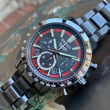 SRQ003-J1 This Seiko Ananta Automatic Chronograph watch is just as functional, as it is elegant. The timepiece consists of 292 components. It is equipped with 8R28 calibre that performs 28 800 vibrations per hour and has 34 bearing jewels. The power reserve exceeds 45 hours. Additional features include a tachymeter, up to 12 hours chronograph, one-piece three pointed hammer for instant reset, column wheel and vertical clutch, luminous dial elements, see-through case back and scratch-resistant sapphire crystal glass with anti-reflective coating. This was a gift from my godfather. Unfortunately my wrists are too small for it. Trying to sell this to get < 40mm to replace it. $2500 PayPal or Zelle