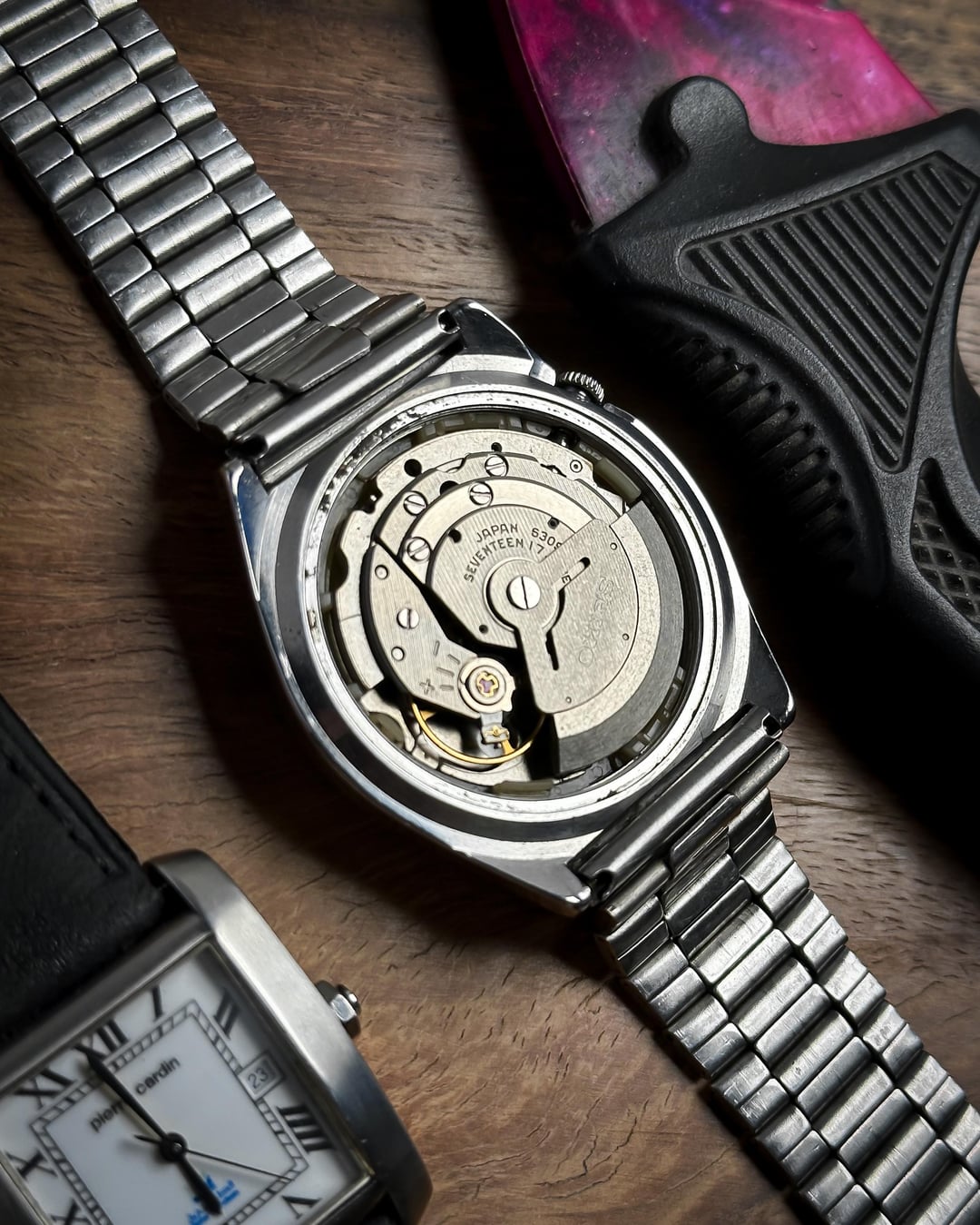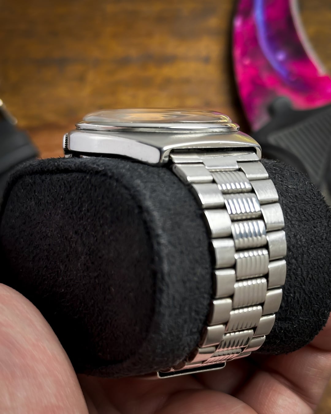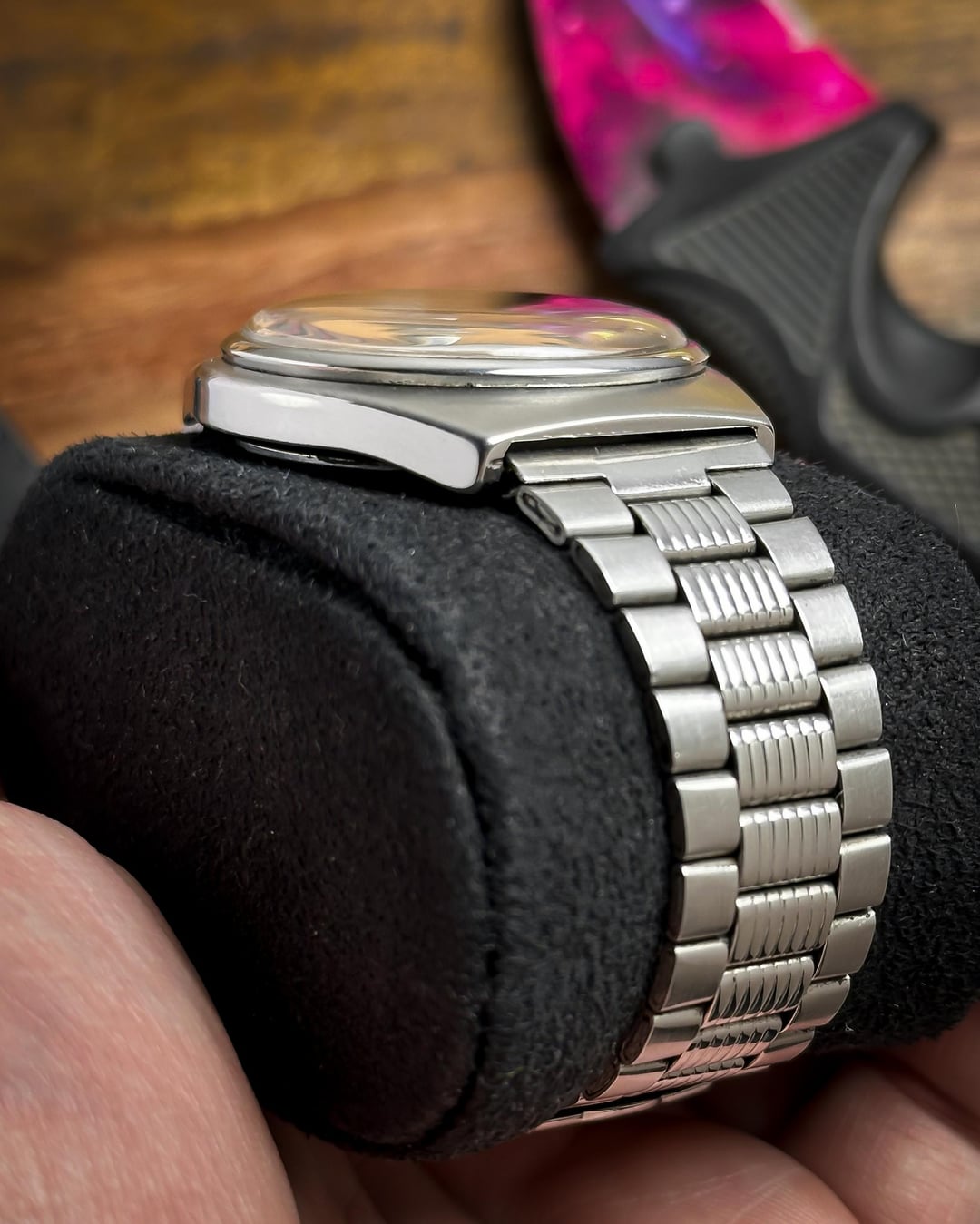[Timestamp](https://drive.google.com/file/d/1zY_wd3tvL0Z7Xd55ZM7uEVWOE_KwRZTf/view?usp=sharing) Hey Watchexchange! Up for sale is a character-rich **Seiko 5 from January 1982 (Ref. 6309-8500)**. This watch is a perfect example of why vintage Seiko collectors love "patina"—it tells a story while maintaining a high-end, textured aesthetic. The dial is the centerpiece: it features a rare **iridescent linen pattern** in a shifting gray/black tone. This is framed by a unique **mustard border outline** with black minute markers, creating a "radar" effect that looks like a glowing sweep on a vintage sonar screen. The dial shows some beautiful natural aging and patina around the edges and center, giving it a true vintage soul. The **bold gold-tone pencil hands** and **applied gold-tone baton indices** provide a sharp contrast against the slate gray background. Protecting the "screen" is a beautiful **domed plexiglass** crystal that adds warmth and vintage distortion at certain angles. The case is a robust, hooded-lug design with a **brushed matte finish**, featuring the classic **tucked crown at 4 o'clock**. It comes on its **original stainless steel bracelet**, which features a unique **mid-lined texture** on every center link. These vertical ridges catch the light beautifully and mirror the industrial, textured look of the linen dial. ***🔹 Key Dimensions*** * **Case Diameter:** 36mm (without crown) * **Lug-to-Lug:** 41mm * **Thickness:** 11mm * **Lug Width:** 18mm 💵 **Price: $135 shipped!** **🚢ing through UPS** 📦 **Payment: PayPal F&F** or G&S (**+4.5% fee by buyer**) or **bank wire (US banks accepted)** 📩 **DM me for more photos or a custom timestamp.** If you love 80s tech-aesthetics and watches with real character, the **Vintage Radar** is ready for its next mission. Follow my [**Instagram**](https://www.instagram.com/everistwatches/) and **Reddit profile** for more **vintage drops**.