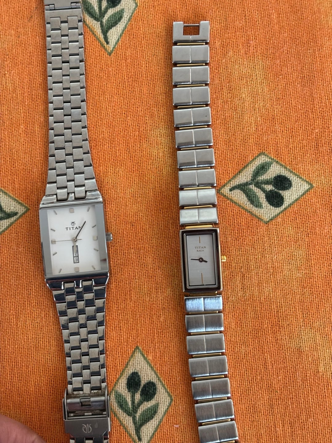 Gently used Titan quartz watch set - Needs batteries - Complementary male and female pieces - $75 for the set of $35 per watch - PayPal or Venmo only - Will by USPS ground from MA