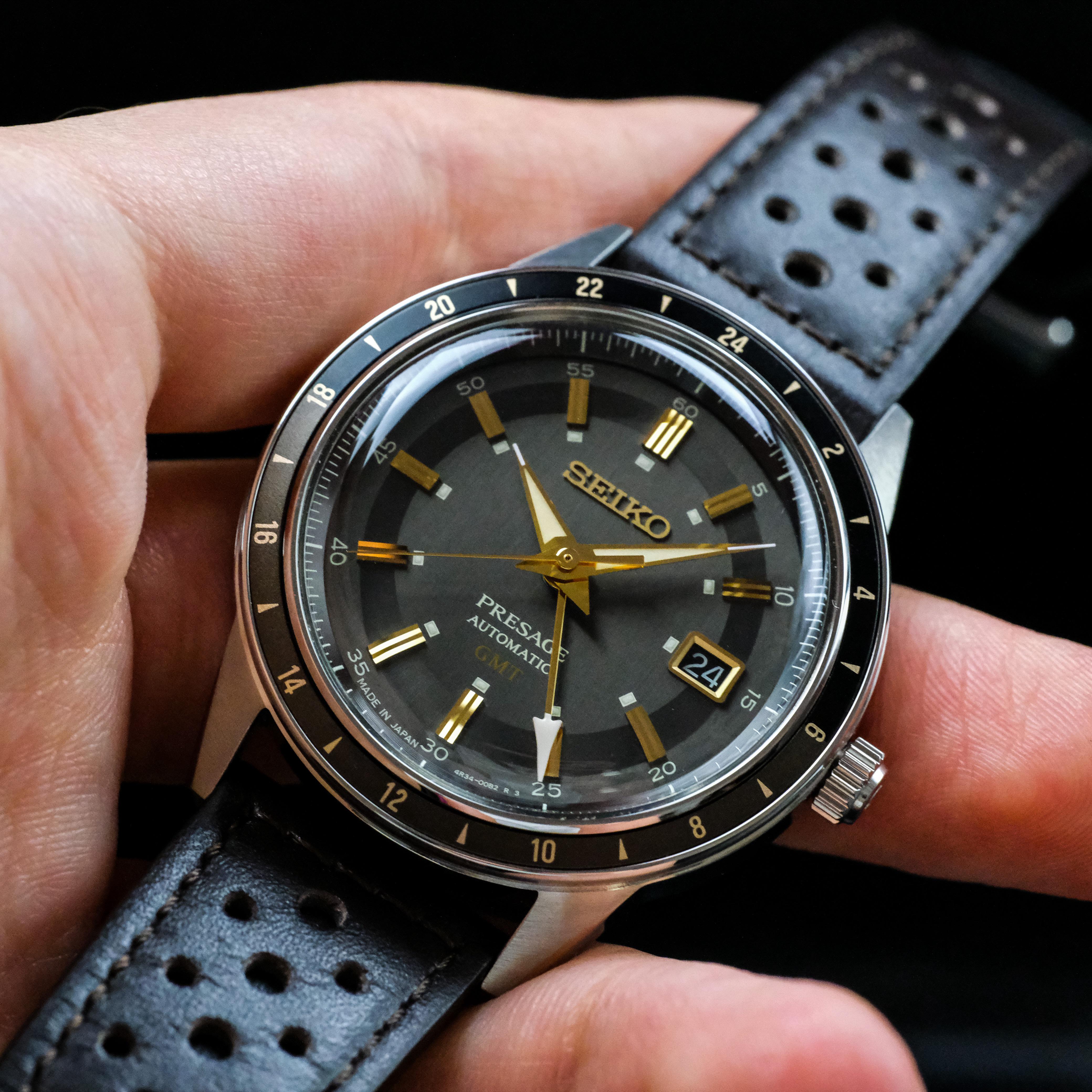 $250 shipped in US. 40.8mm in diameter, 47mm lug to lug, 13.2mm thick, and a 20mm lug width. Watch runs on the seiko 4r34 gmt movement, hardlex crystal front and see through caseback, and 100m of water resistance with normal push pull crown. Cosmetically the watch is in good condition but does have some marks. Main marks are on the case sides. The side opposite the crown has a few larger ones on the top and bottom of the flat midcase. Not noticeable when worn but if you look you’ll find them easily. Few smaller marks on the opposite side. Top of the case, bezel, and crystal all in new condition. Watch will come with generic box and watch itself on original strap pictured. [Pictures](https://imgur.com/a/H1T3LCU) and [Timestamp](https://imgur.com/a/I7e0pty)