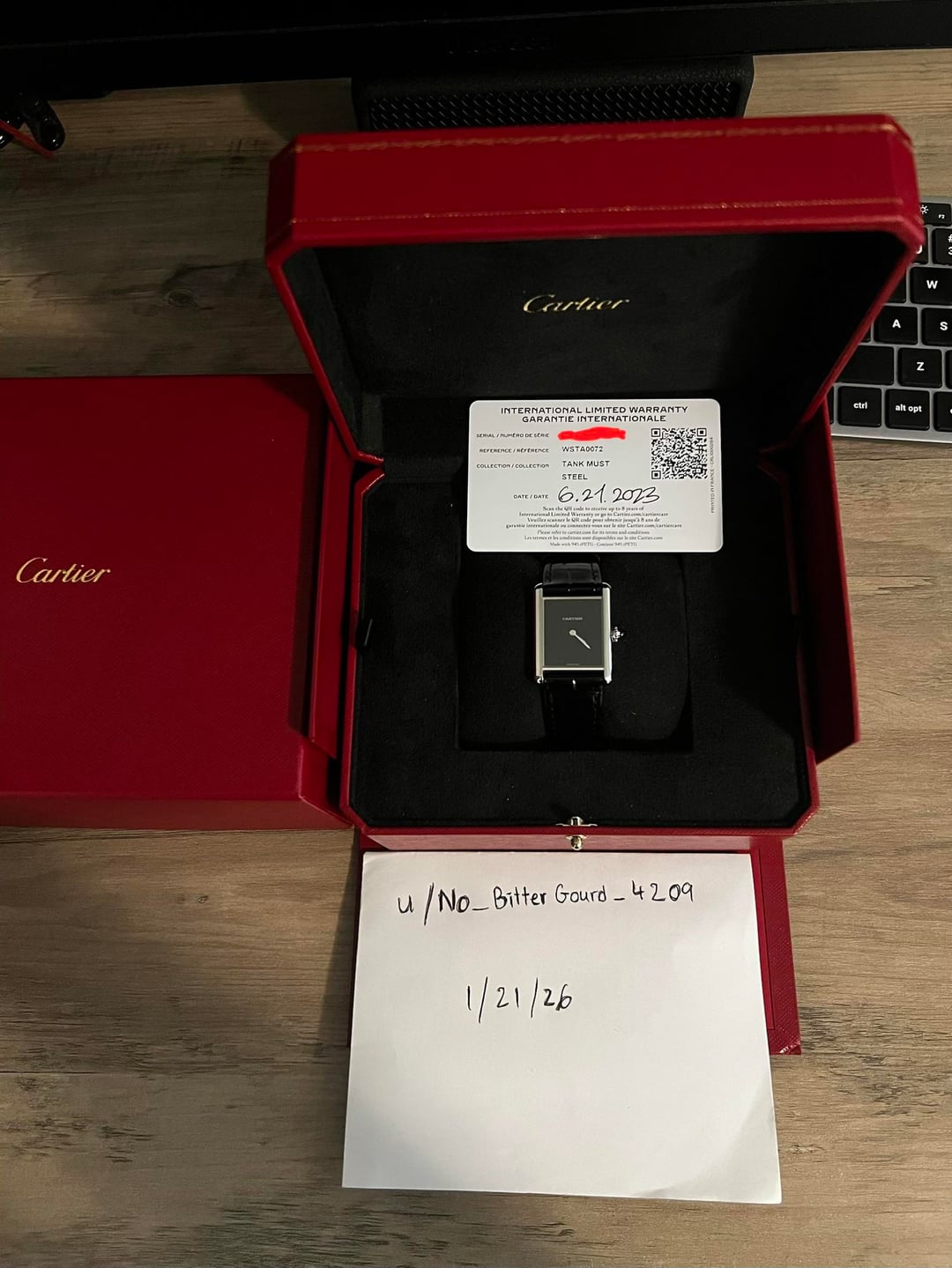 Hi there WatchExchange!!! Today I have a Cartier Tank Must Large in black for sale. This watch has been lightly wear and kept in the box. I wear it with an aftermarket straps so the original straps are almost brand new. This watch is flawless as you can see in the pictures below and has Cartier International warranty until June 19th 2031. [Timestamp and photos](https://imgur.com/a/A3Nl3y6) Asking $3499+shipping Payment: Zelle / Paypal G&S +3% Local: SoCal OC area