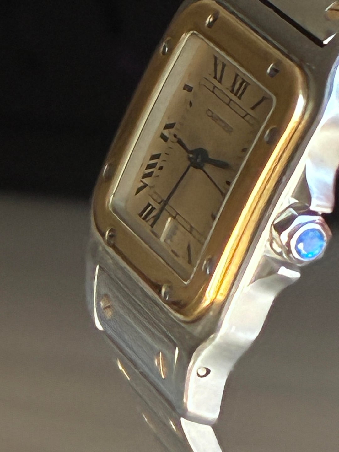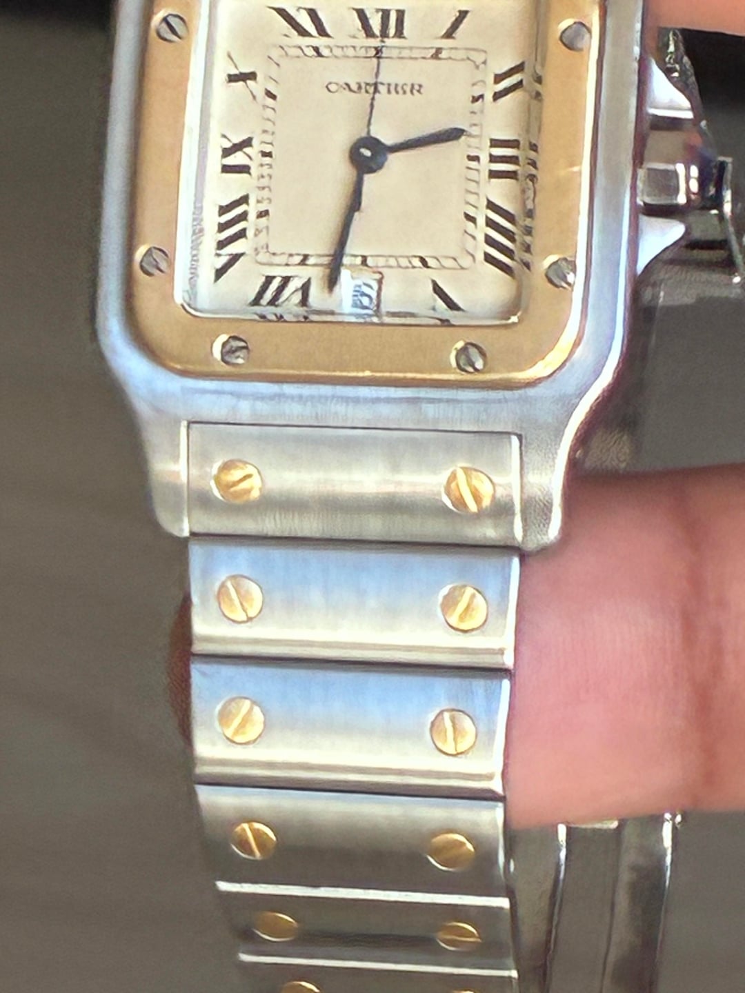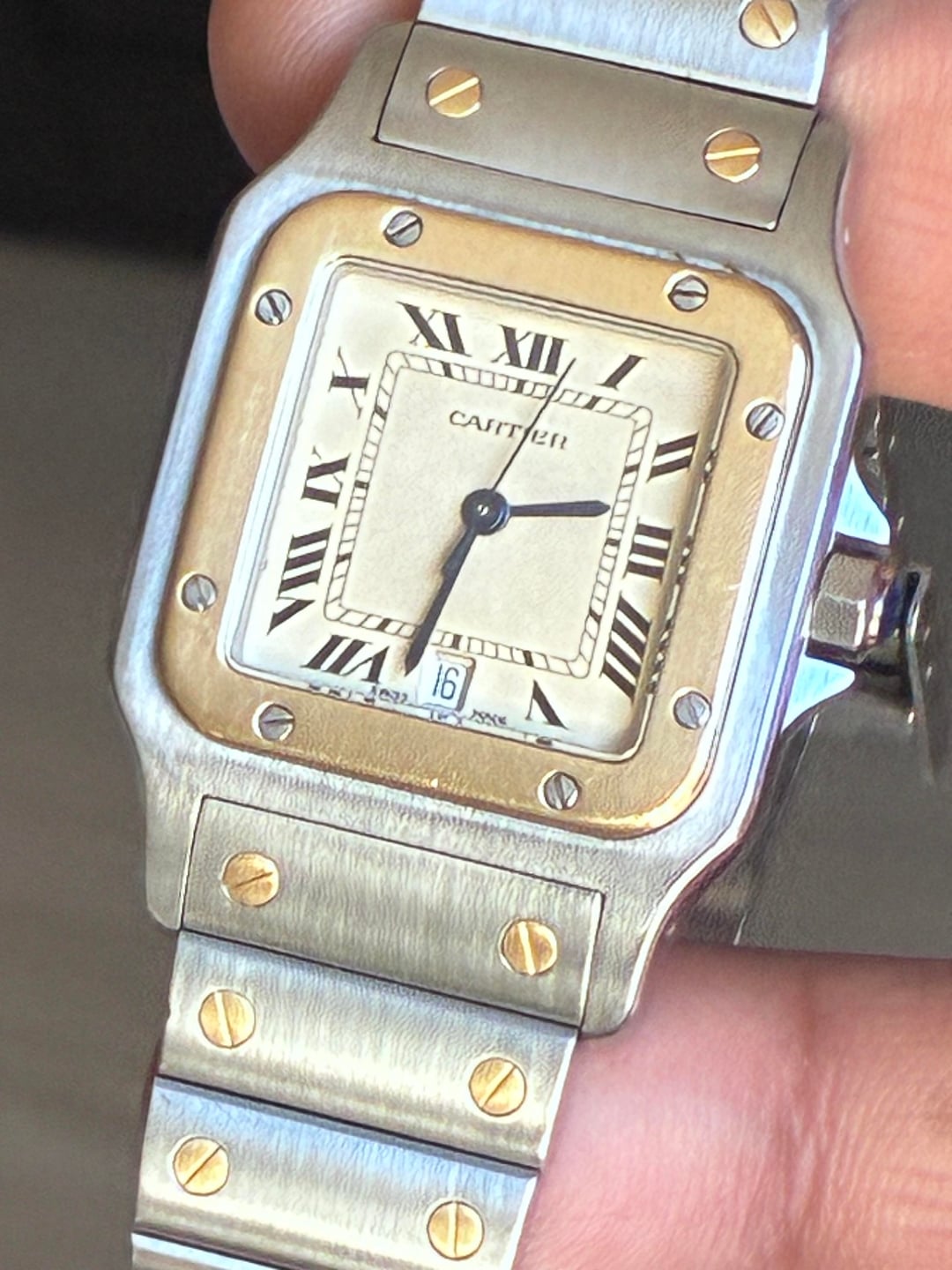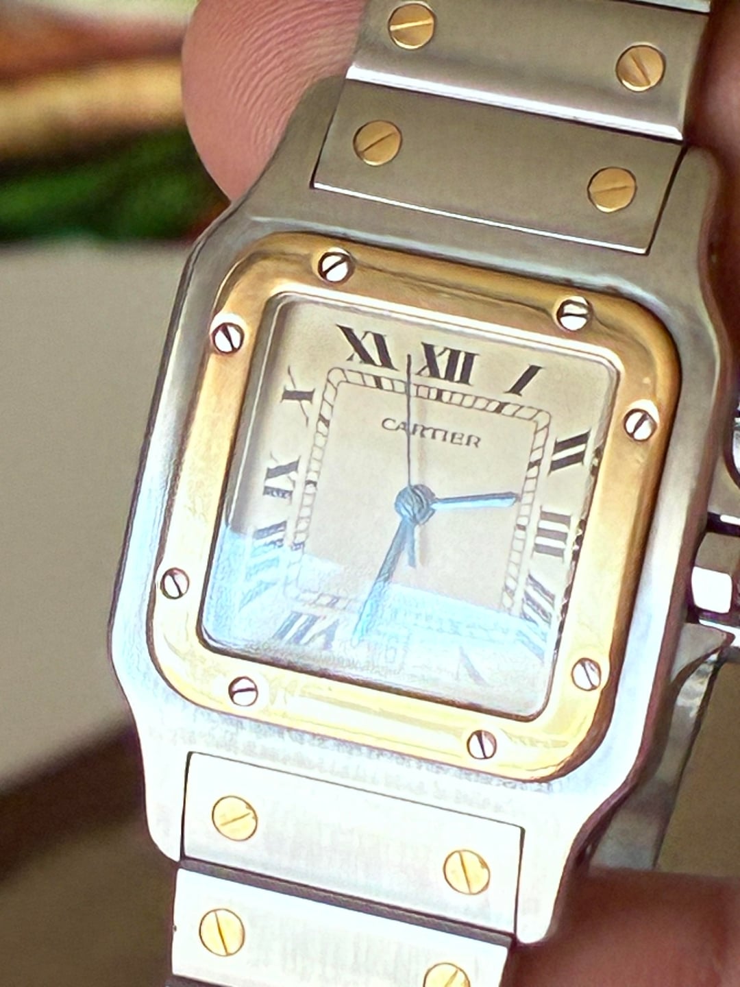 Parting w my safe queen Cartier santos 18k and SS 7.3bracelet 3950 shipped ✈️ Zelle Venmo wire no trades Laf2f Beautiful custard Patina dial unpolished