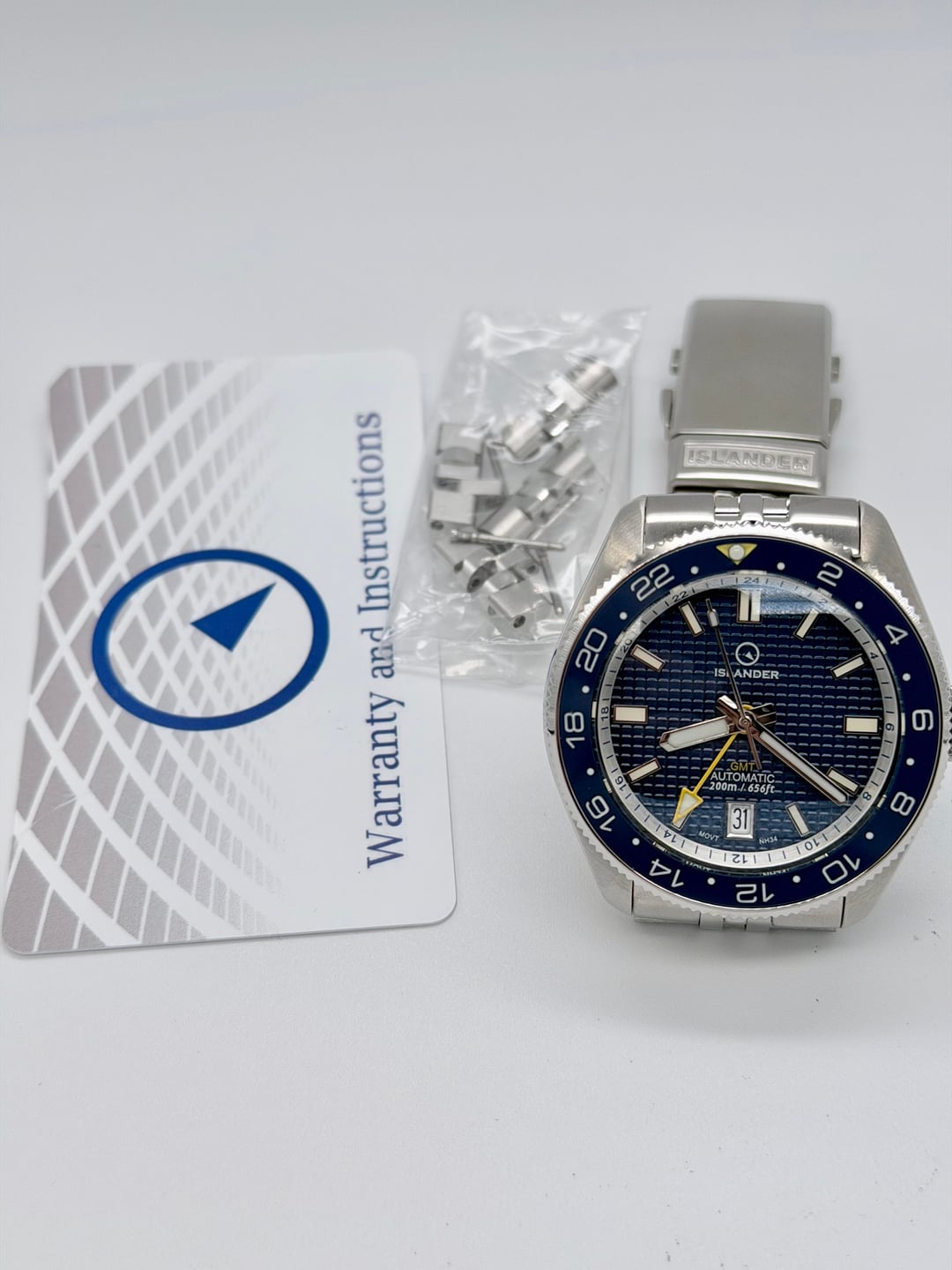 ![[WTS] Islander Automatic GMT Dive Watch with Blue Waffle Dial ISL-214 full kit 2](https://cdn-cf.watchpatrol.net/600x600/img/full/6ac55b18daeed94bbf1e9d8e1d795b88a7b0741f.jpg)