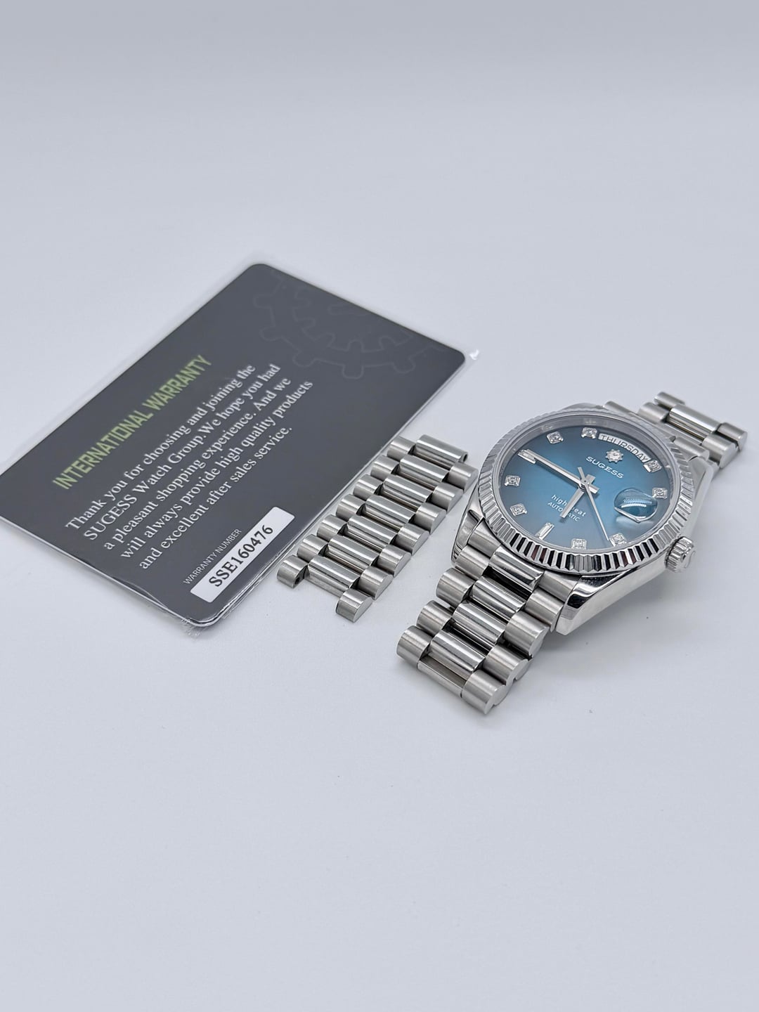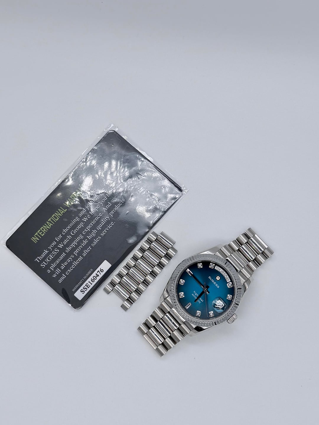Sugess 36mm day date homage for sale with blue fume dial and diamond markers. Comes as full kit. Has superficial scratches asking $175 shipped