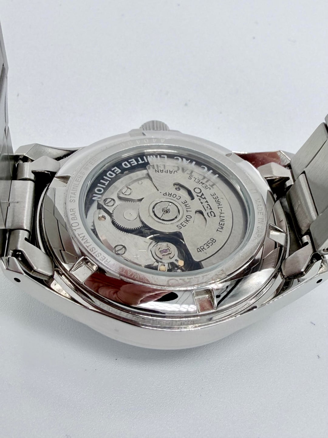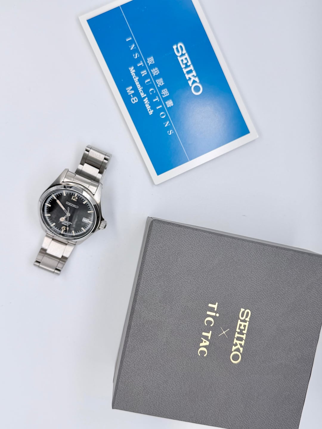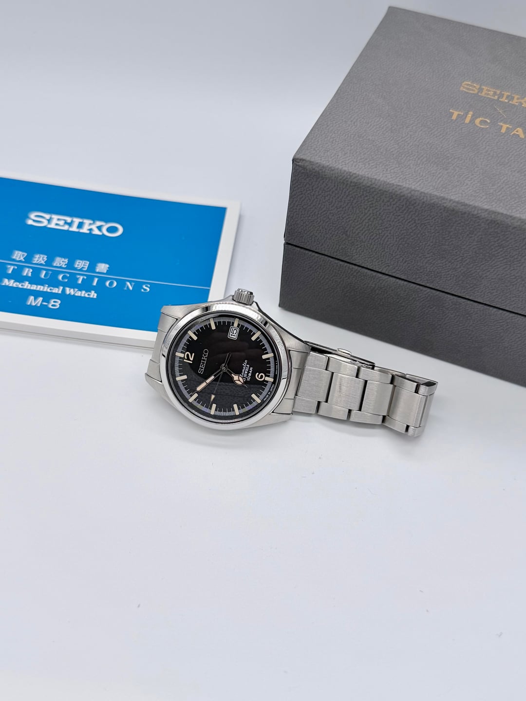 I’m offering for sale the Seiko x TiCTAC SZSB006 “Black” Limited Edition, a special collaboration model released to celebrate TiCTAC’s 35th Anniversary. This watch has been lightly worn and remains in excellent condition, showcasing Seiko’s signature blend of modern and classic design. Specifications: Movement: Seiko Automatic 4R35 (hand-winding & hacking). Power Reserve: Approx. 41 hours Case: Stainless Steel Case Size: 40mm diameter × 11mm thickness Dial: Deep black – sleek, elegant, and beautifully reflective under light. Crystal: Hardlex Bracelet: Original stainless steel bracelet (all links included). Water Resistance: 10 bar Accessories Included : bracelet tool Full kit – original box with logo, bracelet tool and user manual. Price: $499 USD Thank you for your interest