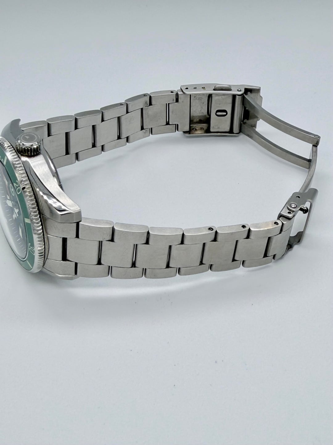 Up for sale is islander Southport green dial. Excellent condition overall. Please refer to pictures. Feed free to ask for if there are any questions asking $175 plus shipping Movement: NH35 Automatic (self-winding, hand wind, hacks) Case: Stainless steel, 42mm x 15mm thick. 49mm tip to tip Back: Solid embossed caseback Crystal: Anti-reflective domed sapphire Band: Bracelet with all solid links, Push-Button Deployant Clasp, 22mm. Water Resistant: 200 meters Weight: 182 grams