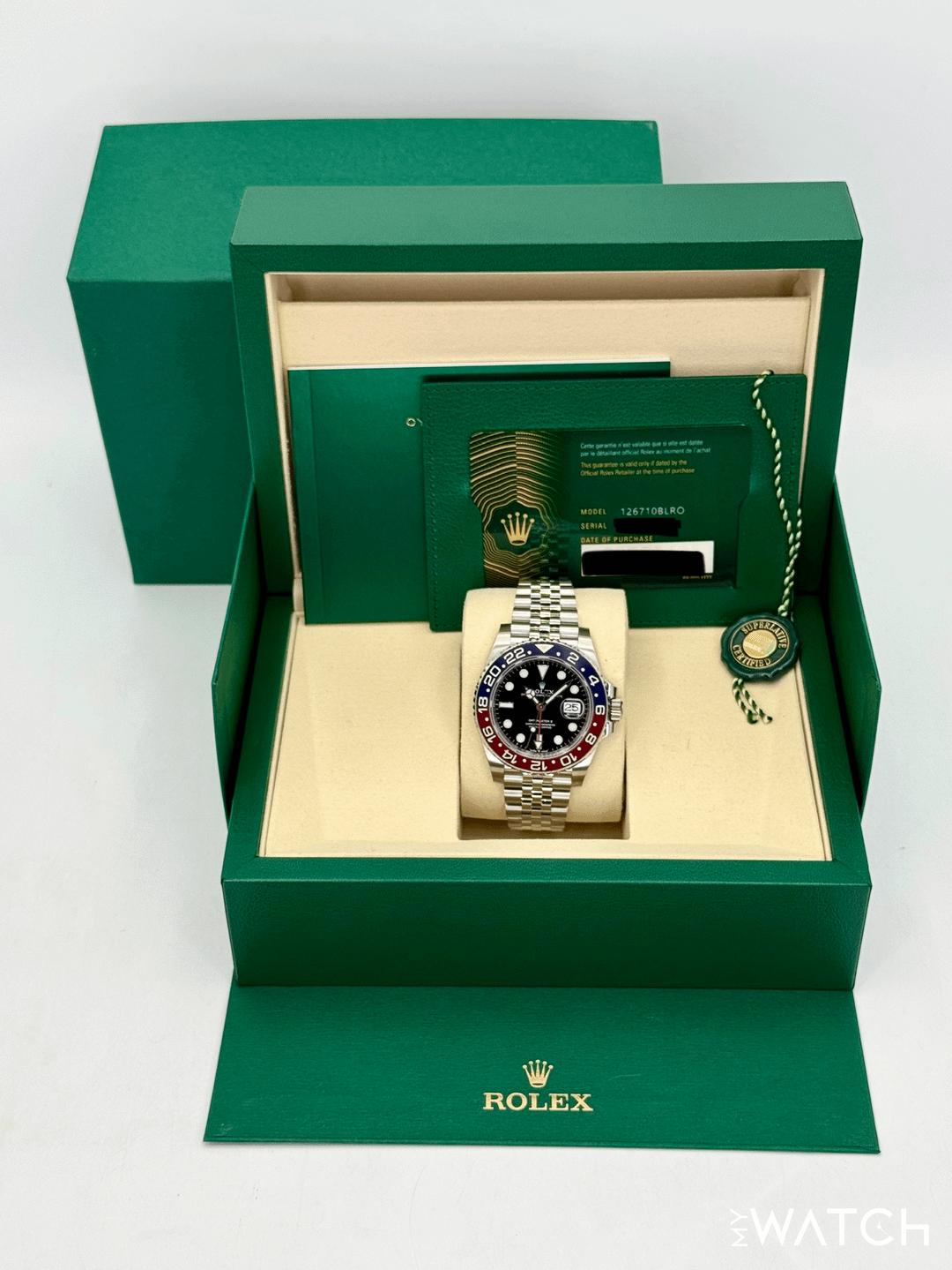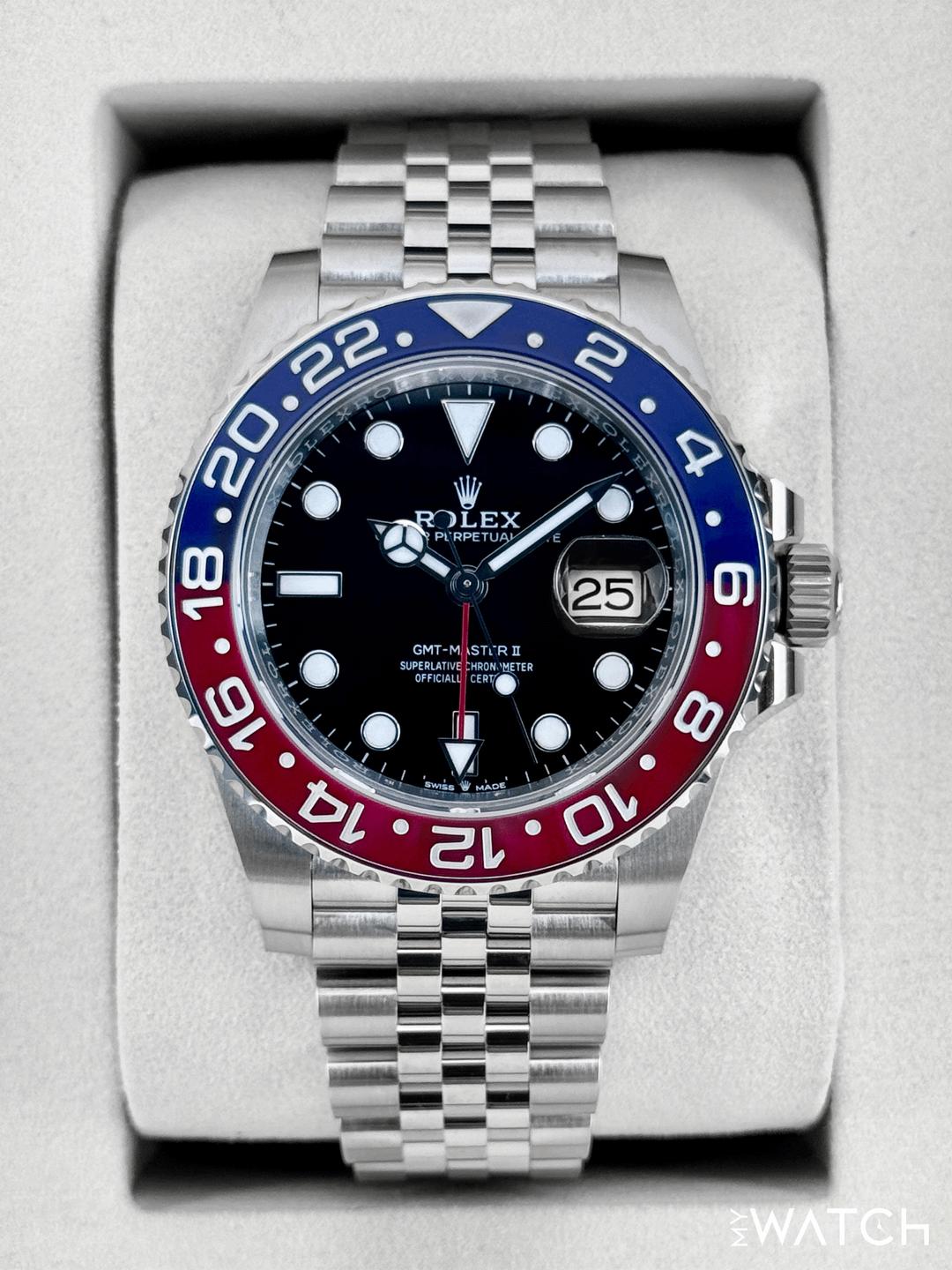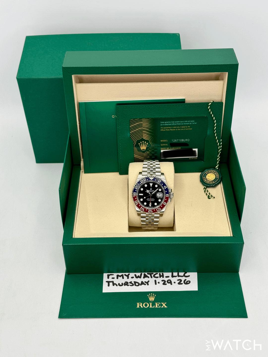 🔵**NEW 2026 Rolex GMT-Master II "Pepsi" 40mm 126710BLRO Stainless Steel Jubilee Bracelet Black Dial** 🔵**TRADE or SELL us your luxury watch, all brands considered. Message me details.** **Includes the following:** **✔️BRAND NEW UPDATED ROLEX BOX (Double Boxed)** **✔️Box and Papers - Yes** **✔️Warranty card dated 2026** **✔️5 year manufacturer warranty** **✔️Manual and Warranty booklets** **✔️Green Hang Tag included** **✔️Size: 7.75inch wrist (Full Links)** **✔️Bezel: Blue and Red Ceramic "Pepsi"** **✔️Material: Oystersteel** **✔️Watch is BRAND NEW/UNWORN** **✔️**[**Trades**](https://mywatchllc.com/pages/sell-rolex-watch) **welcome** Business Name: **My Watch LLC** LOCATION: Oak Park, Michigan ✔️[MyWatchLLC.com](http://mywatchllc.com/) for current inventory ✔️Google Business Listing [https://g.co/kgs/Cmd6FPW](https://g.co/kgs/Cmd6FPW) ✔️Business Hours M-F 9-6 ✔️Facetime/Video chat/calls welcome to view the watch interested. ✔️Contact: 248-422-0909 via text or call for quickest response. 🟢TERMS: Visit [MyWatchLLC.Com](http://mywatchllc.com/) for payments accepted 🟢REFERENCES/REVIEWS: We are well reviewed on all platforms from google, trust pilot, rolexforums, additionally we have 300+ reference in multiple FaceBook watch groups, reference checks welcome. 🟢SHIPPING: If you are not local, we offer Fully Insured FedEx overnight shipping in the USA for a fee. International shipping available. [https://mywatchllc.com/products/new-2026-rolex-gmt-master-ii-pepsi-40mm-126710blro-jubilee](https://mywatchllc.com/products/new-2026-rolex-gmt-master-ii-pepsi-40mm-126710blro-jubilee)