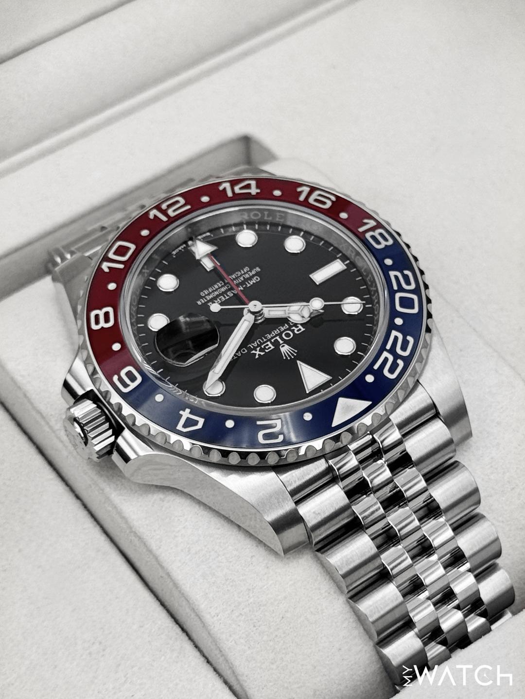 | Rolex GMT-Master II Pepsi Blue Red Ceramic Bezel 126710BLRO Jubilee Bracelet tribecawatch (59) |