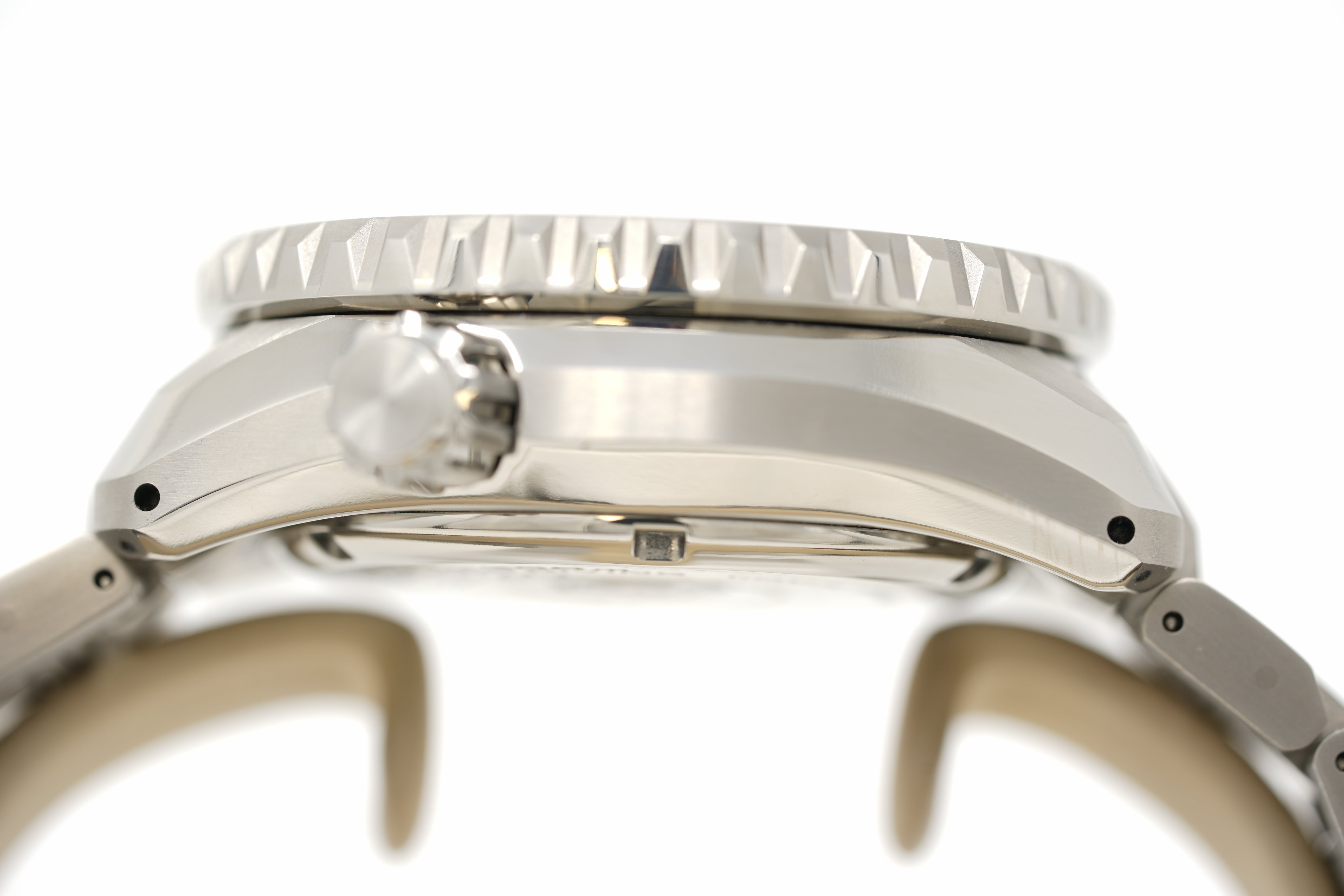 This pre-owned watch is in 94% condition due to faint marks on the sides and back of the case. The bracelet is in 94% condition due to faint marks on a few of the links and clasp. Originally purchased in May 2025, this watch comes with its inner and outer box, digital instruction manual, warranty card, hangtag, and the one-year Topper Pre-Owned Select warranty.