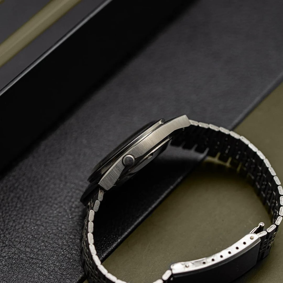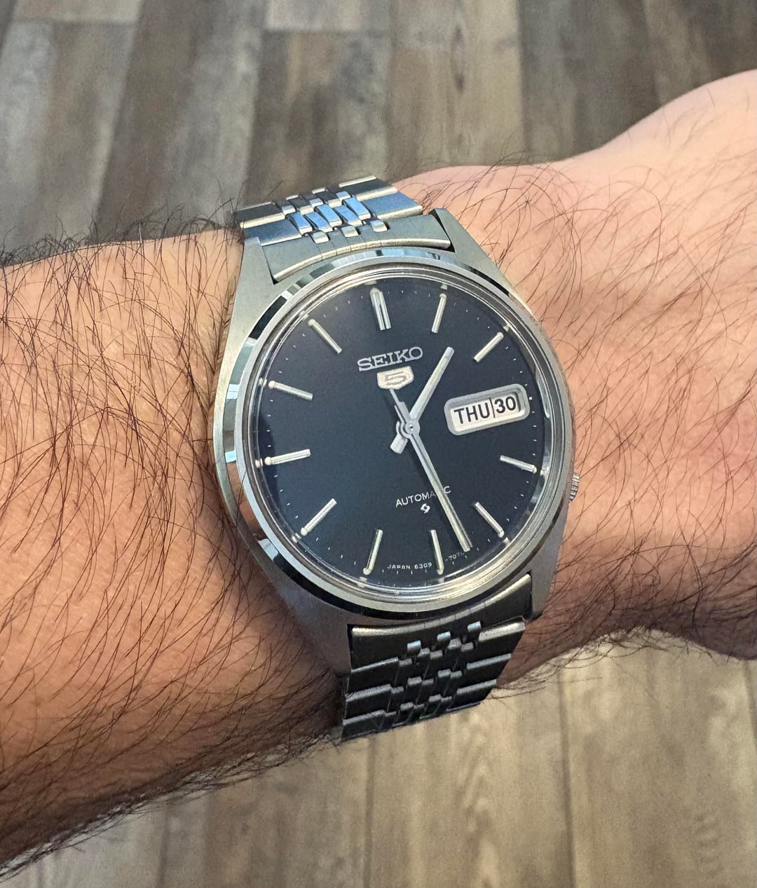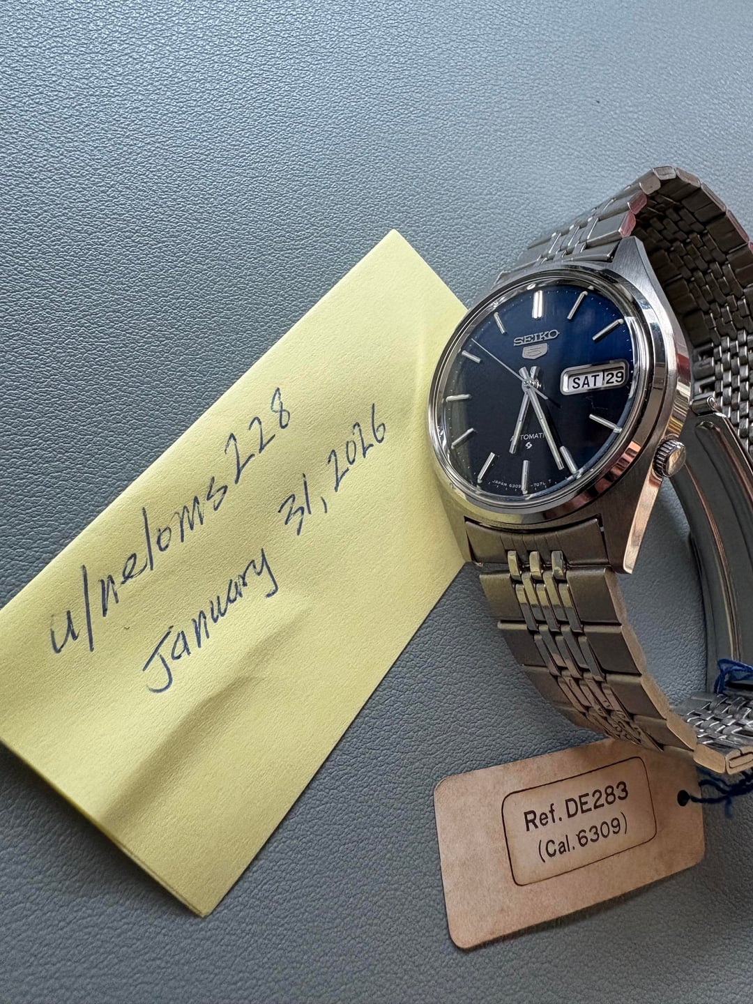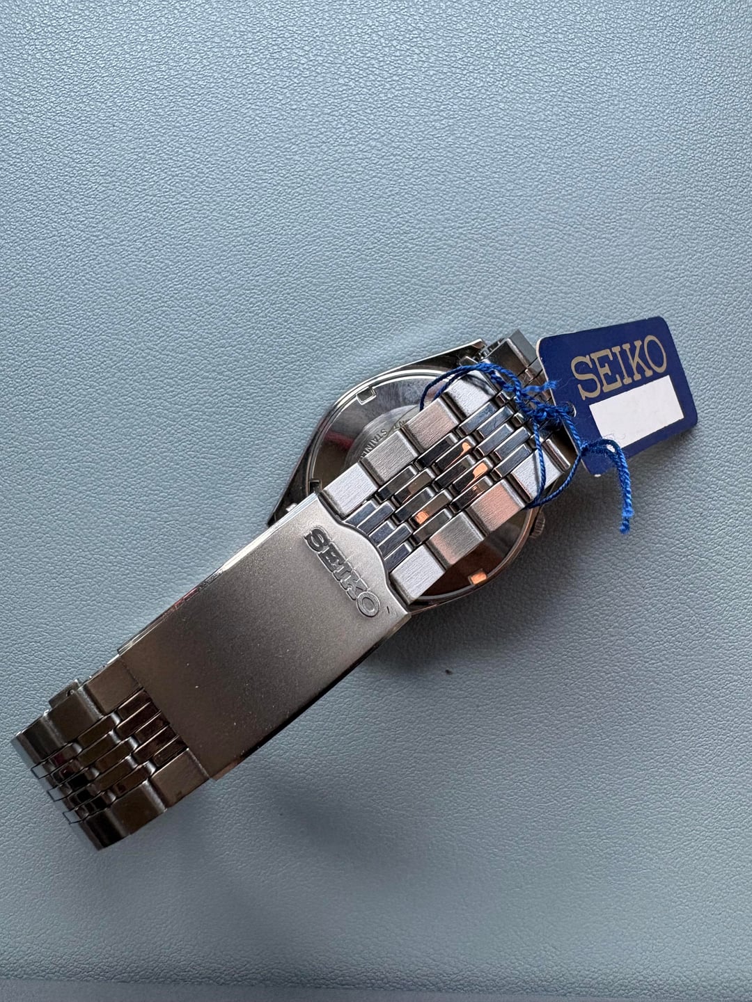 Here’s a cool piece of you want a birth year watch! Mint condition with hang tag, watch only. New old stock from 1979. Automatic movement, quick set date, Suwa stamped dial. 35mm x 11mm thick Beat rate 21,600 Power reserve 42 hours Yours for $279 including shipping CONUS. Zelle or Venmo, no trades.